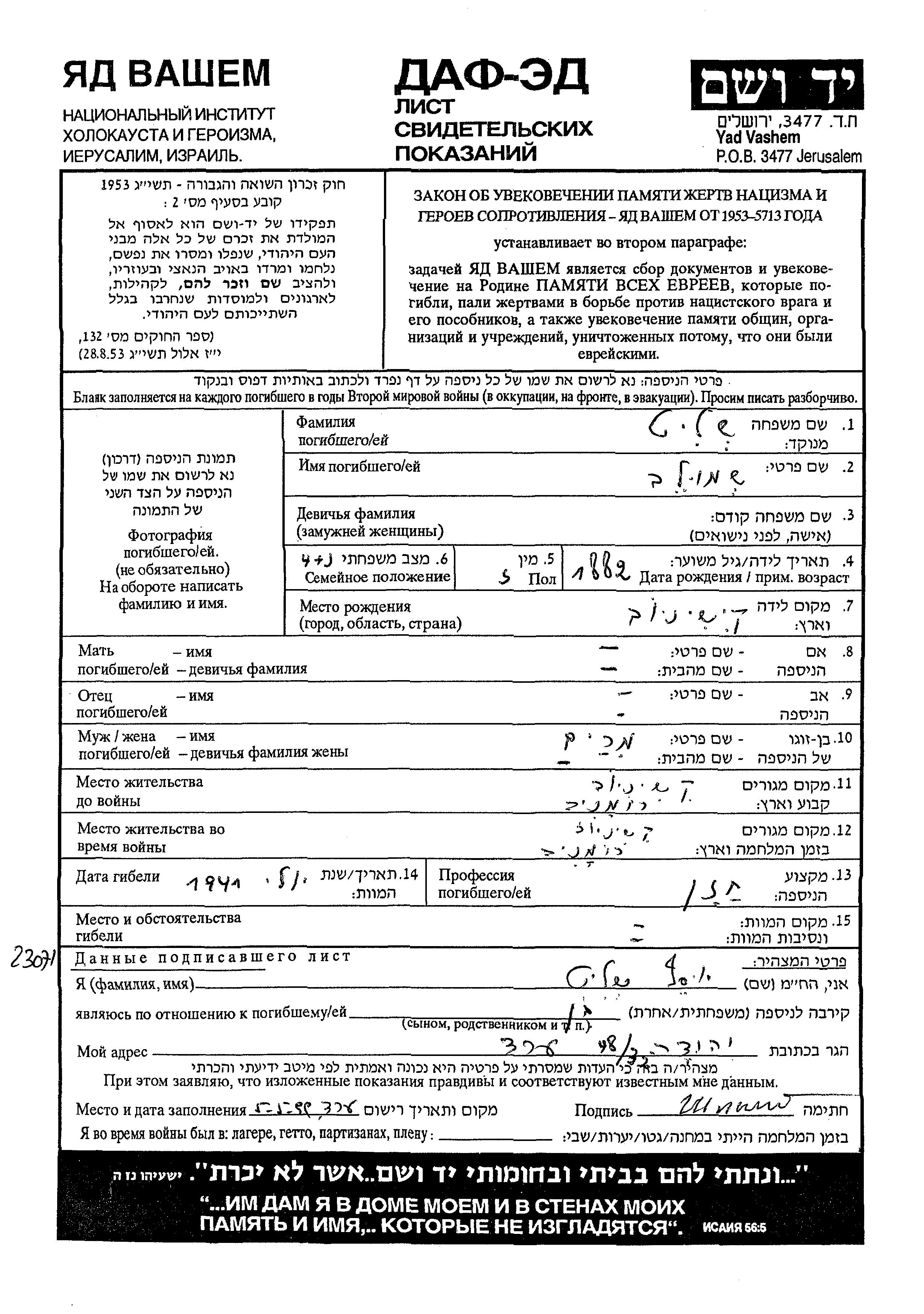 Поиск подателя Листа свидетельских показаний. Поиск по любому имени, включая уменьшительное или прозвище