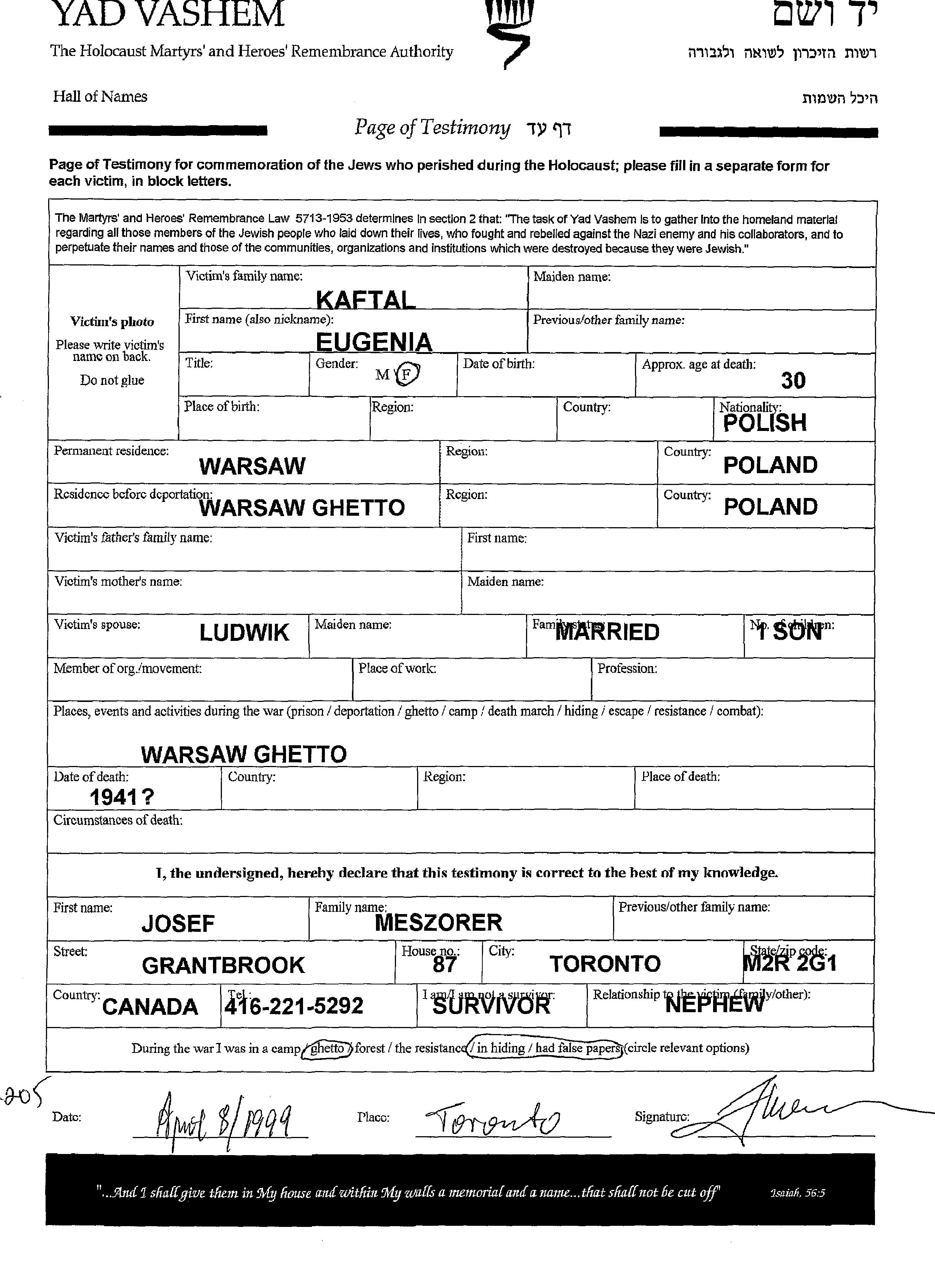 Поиск подателя Листа свидетельских показаний. Поиск по любому имени, включая уменьшительное или прозвище