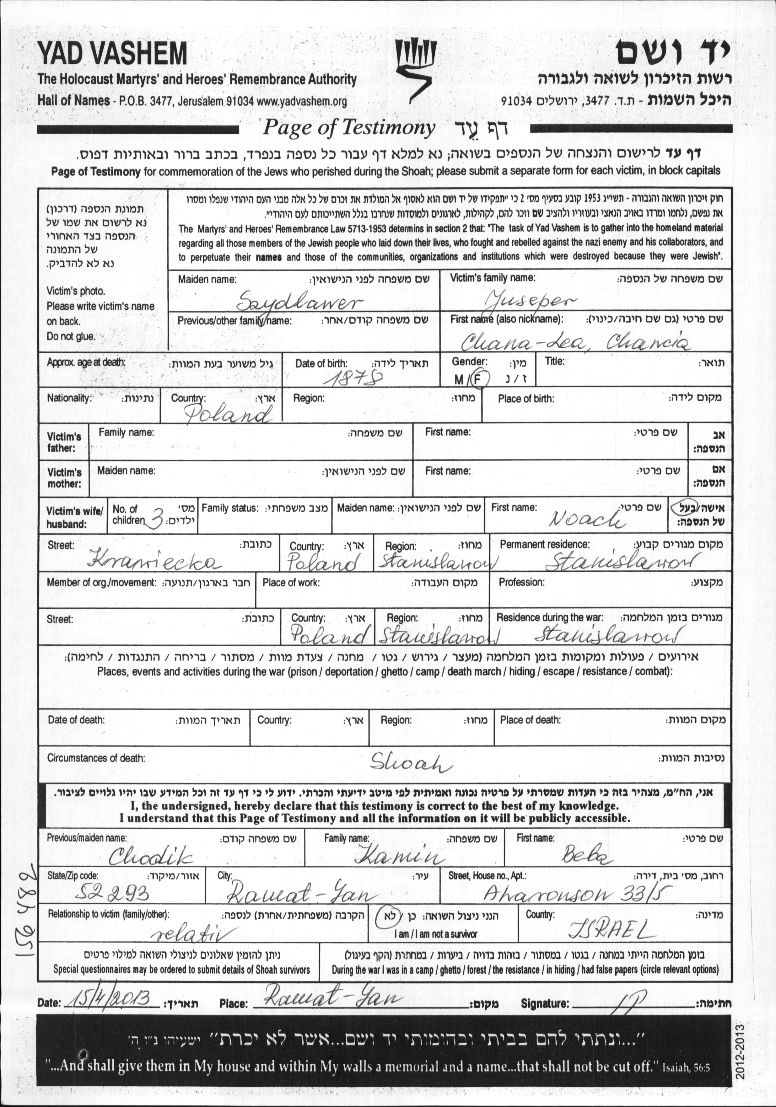 Во время Шоа евреев уничтожали разными способами: газовые камеры, расстрелы, их заживо хоронили или сжигали, непосильным принудительным трудом, голодом, эпидемиями, отсутствием минимальных гигиенических условий и медицинского обслуживания, и т.д. Некоторые евреи добровольно расстались со своей жизнью, чтобы избежать ареста и дальнейших преследований или чтобы покончить с безысходностью и бесконечными страданиями.