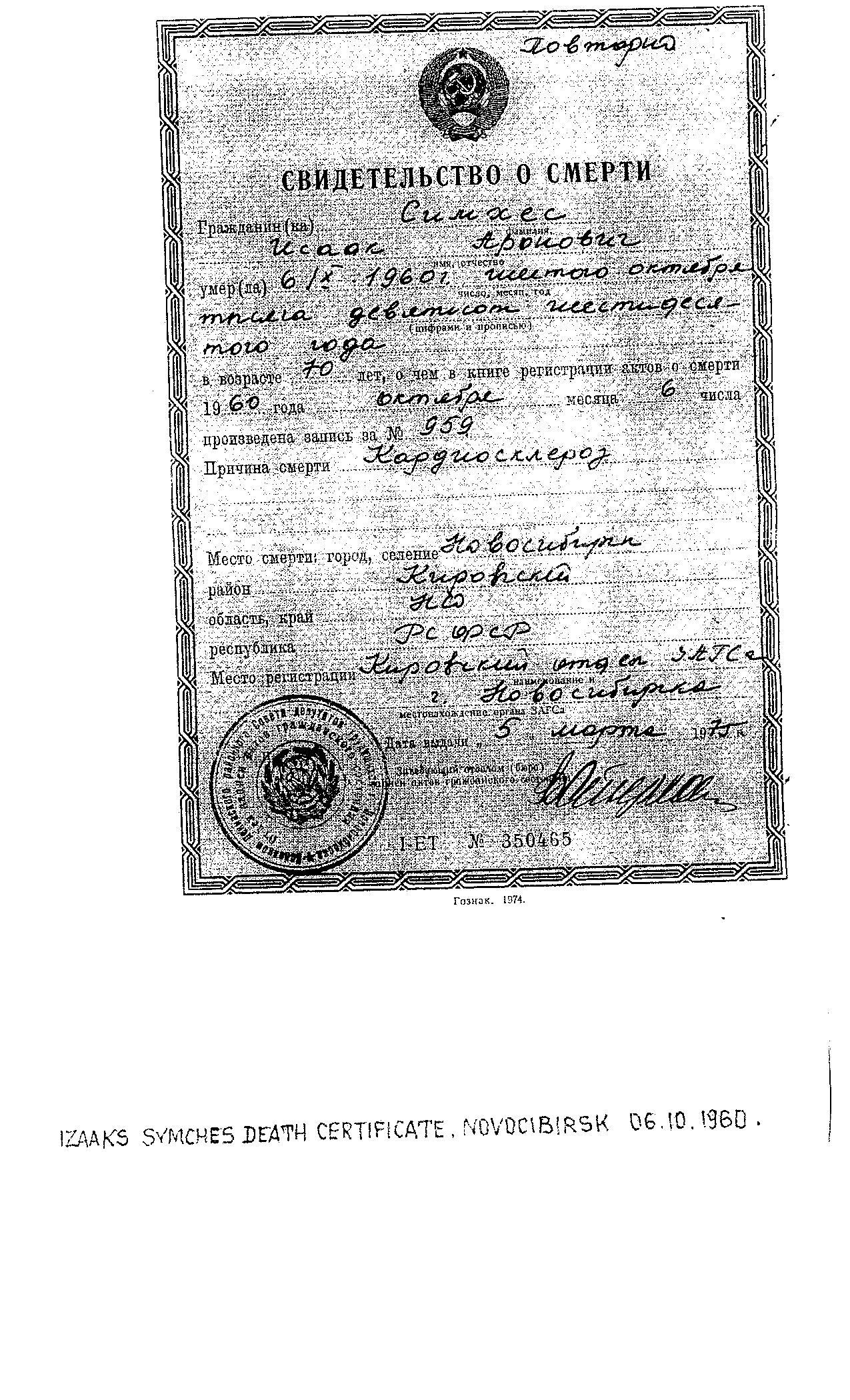 | Симхес | Изаак | место не указано, | Birth certificate | |