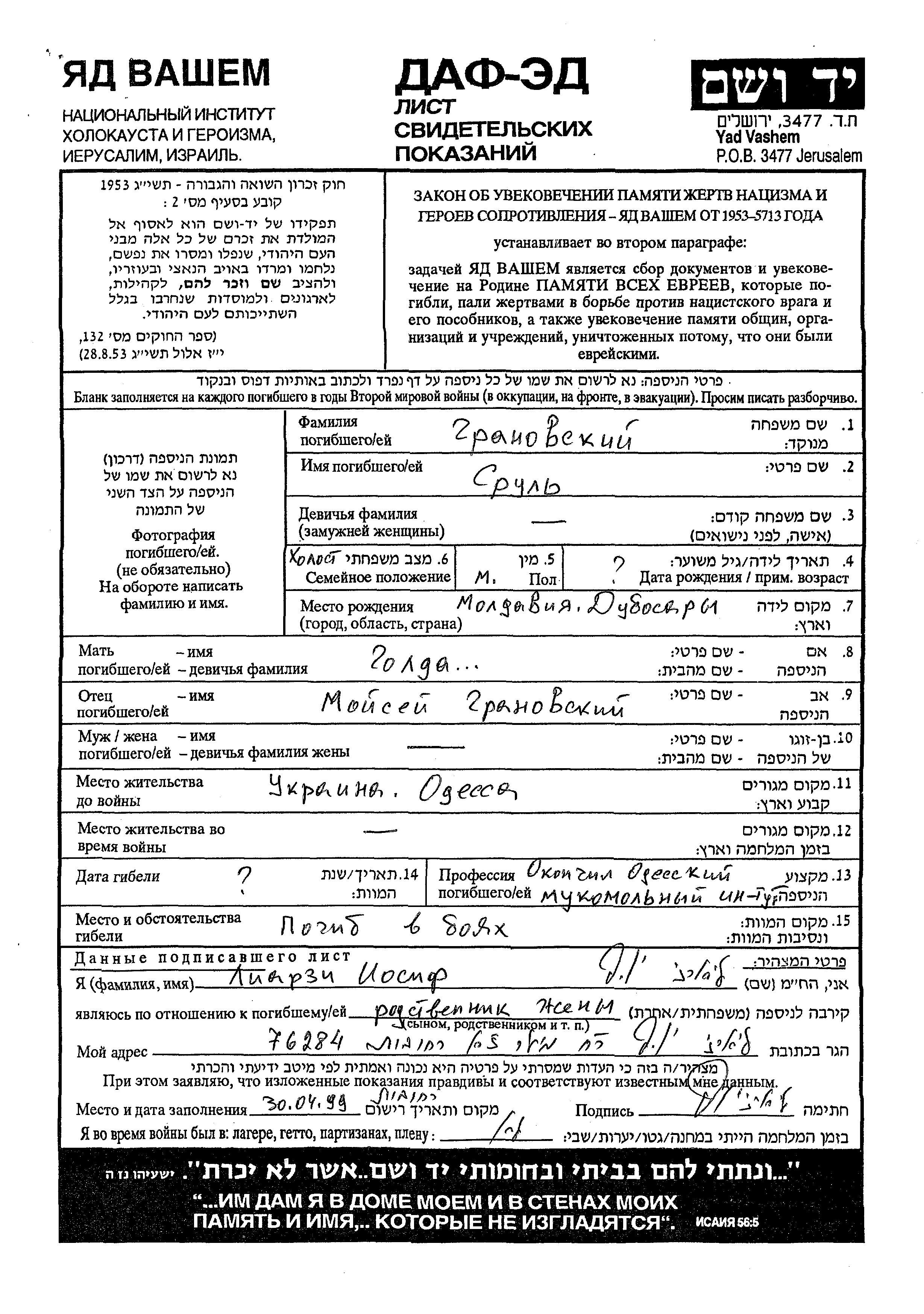 Поиск подателя Листа свидетельских показаний. Поиск по любому имени, включая уменьшительное или прозвище