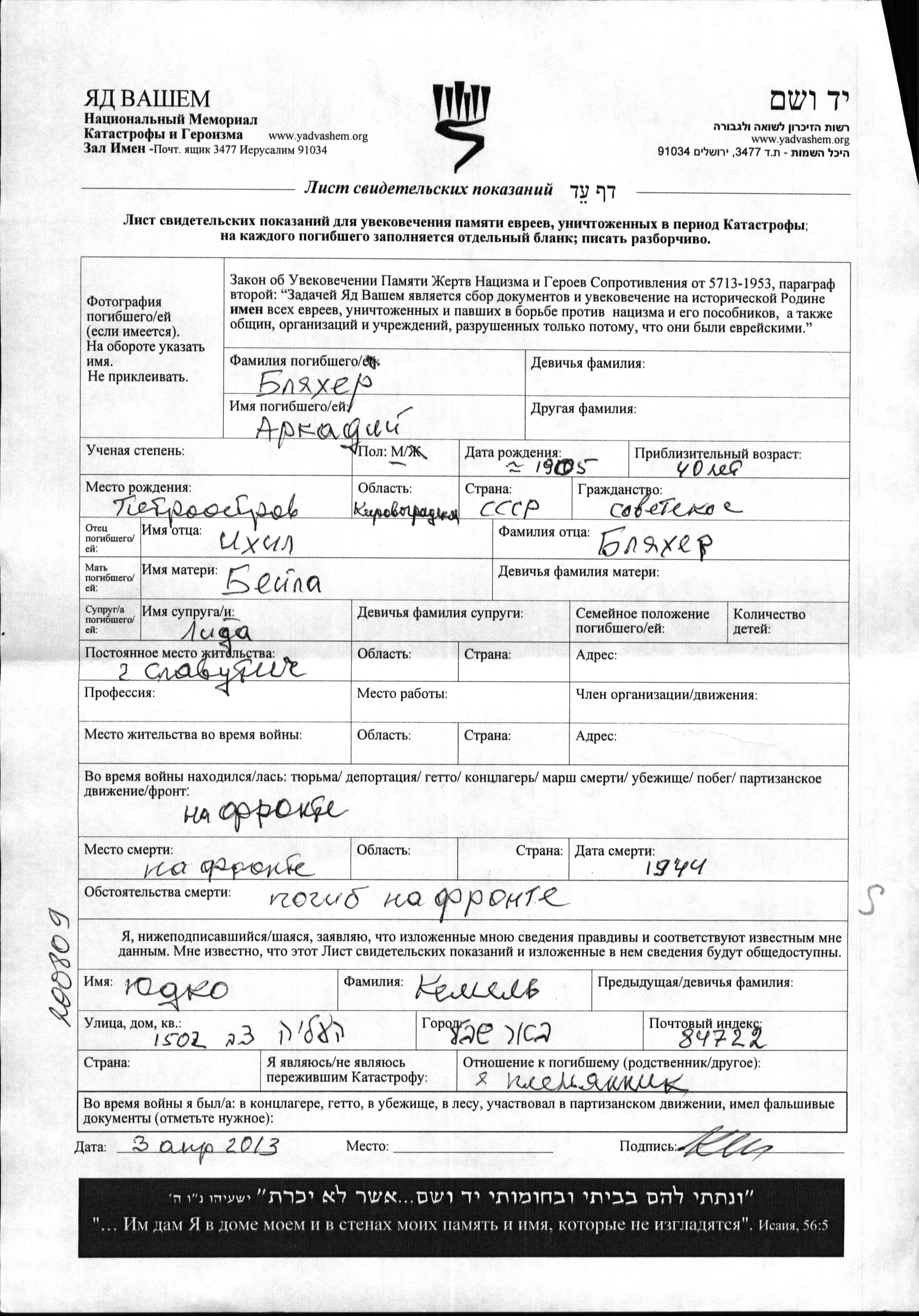 Поиск подателя Листа свидетельских показаний. Поиск по любому имени, включая уменьшительное или прозвище