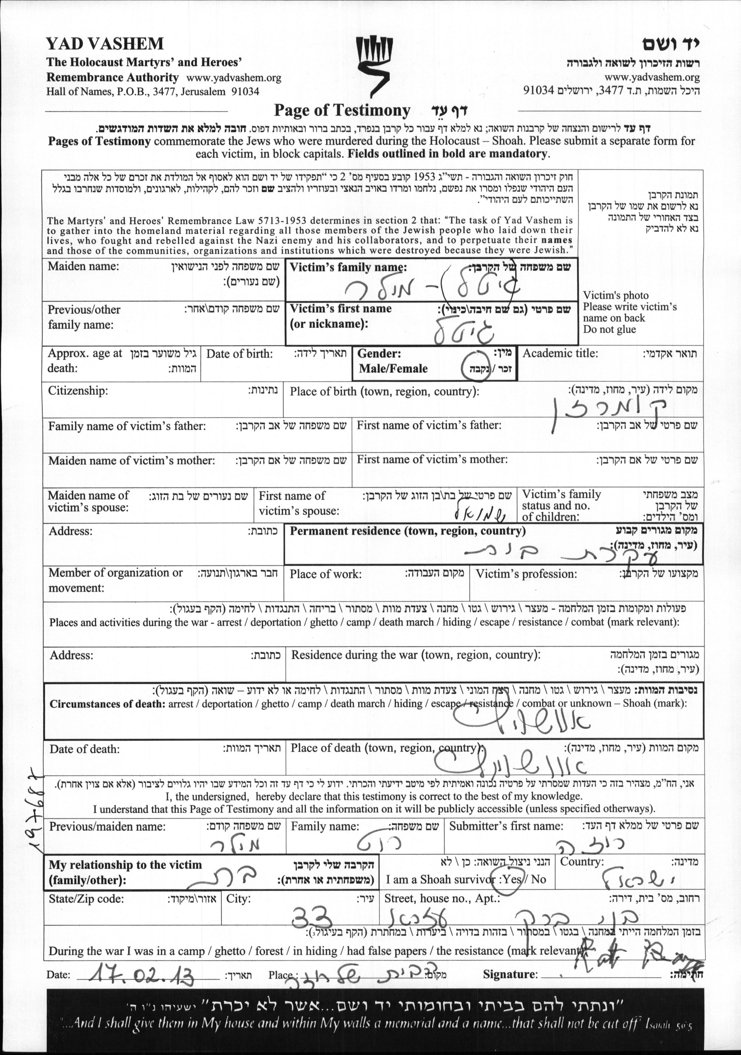 Во время Шоа евреев уничтожали разными способами: газовые камеры, расстрелы, их заживо хоронили или сжигали, непосильным принудительным трудом, голодом, эпидемиями, отсутствием минимальных гигиенических условий и медицинского обслуживания, и т.д. Некоторые евреи добровольно расстались со своей жизнью, чтобы избежать ареста и дальнейших преследований или чтобы покончить с безысходностью и бесконечными страданиями. Десятки тысяч еврейских солдат, служивших в Советской армии и попавших в плен, , были отобраны как евреи и убиты. Многие были зарегистрированы как «пропавшие без вести».