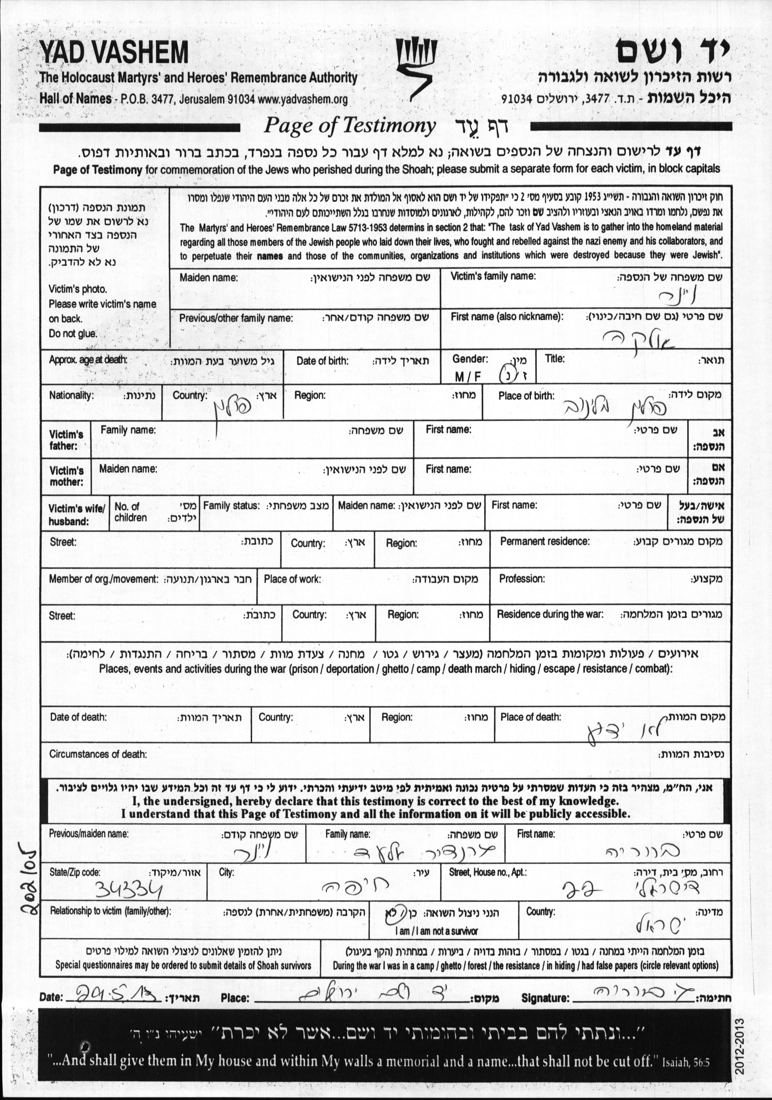 Поиск подателя Листа свидетельских показаний. Поиск по любому имени, включая уменьшительное или прозвище