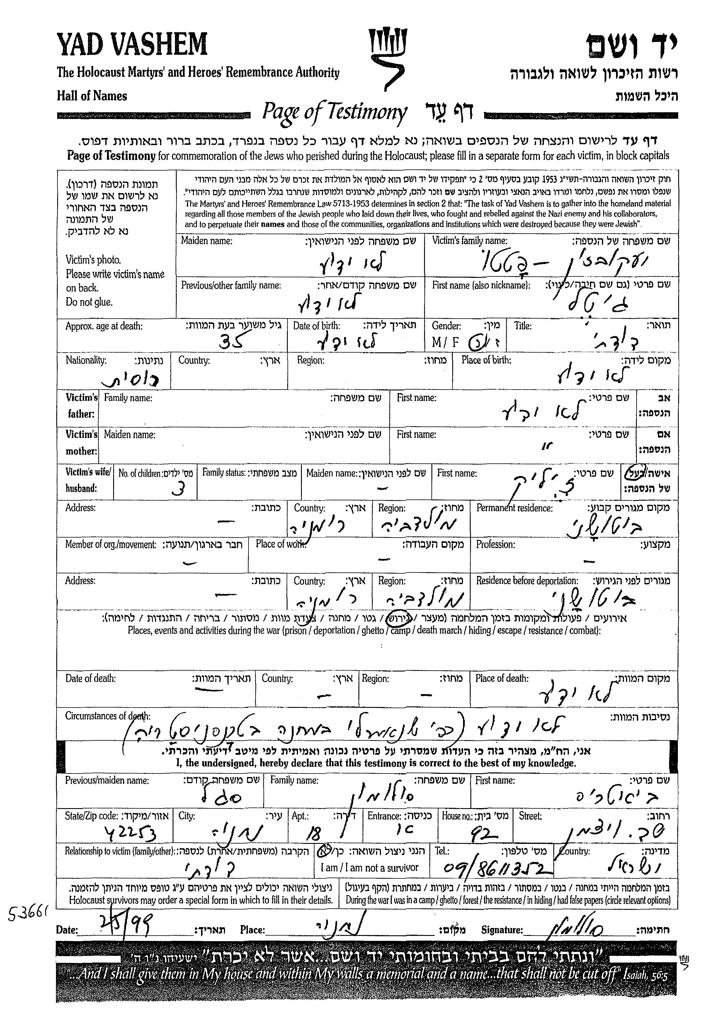 Во время Шоа евреев уничтожали разными способами: газовые камеры, расстрелы, их заживо хоронили или сжигали, непосильным принудительным трудом, голодом, эпидемиями, отсутствием минимальных гигиенических условий и медицинского обслуживания, и т.д. Некоторые евреи добровольно расстались со своей жизнью, чтобы избежать ареста и дальнейших преследований или чтобы покончить с безысходностью и бесконечными страданиями. Десятки тысяч еврейских солдат, служивших в Советской армии и попавших в плен, , были отобраны как евреи и убиты. Многие были зарегистрированы как «пропавшие без вести».