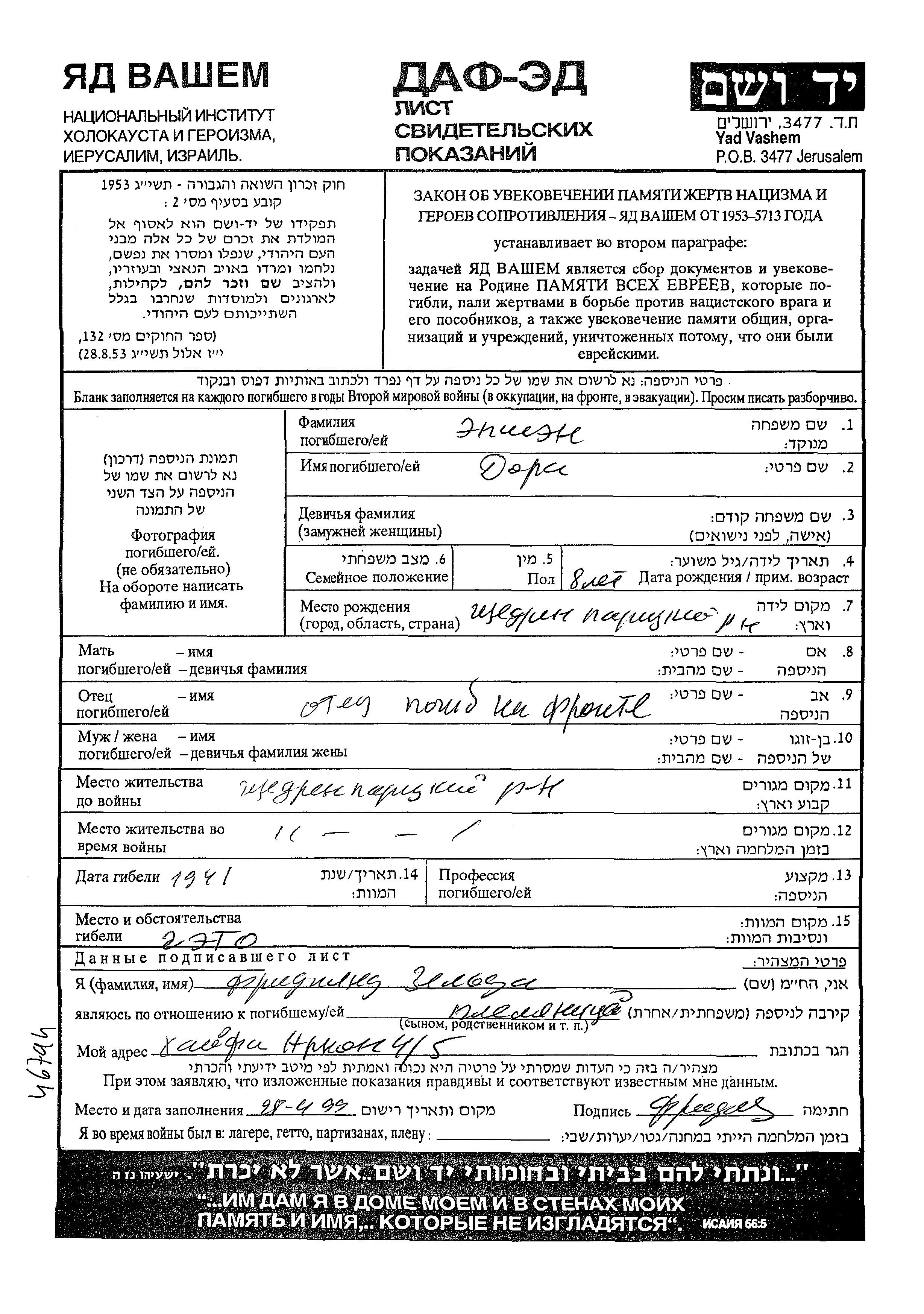 Поиск подателя Листа свидетельских показаний. Поиск по любому имени, включая уменьшительное или прозвище