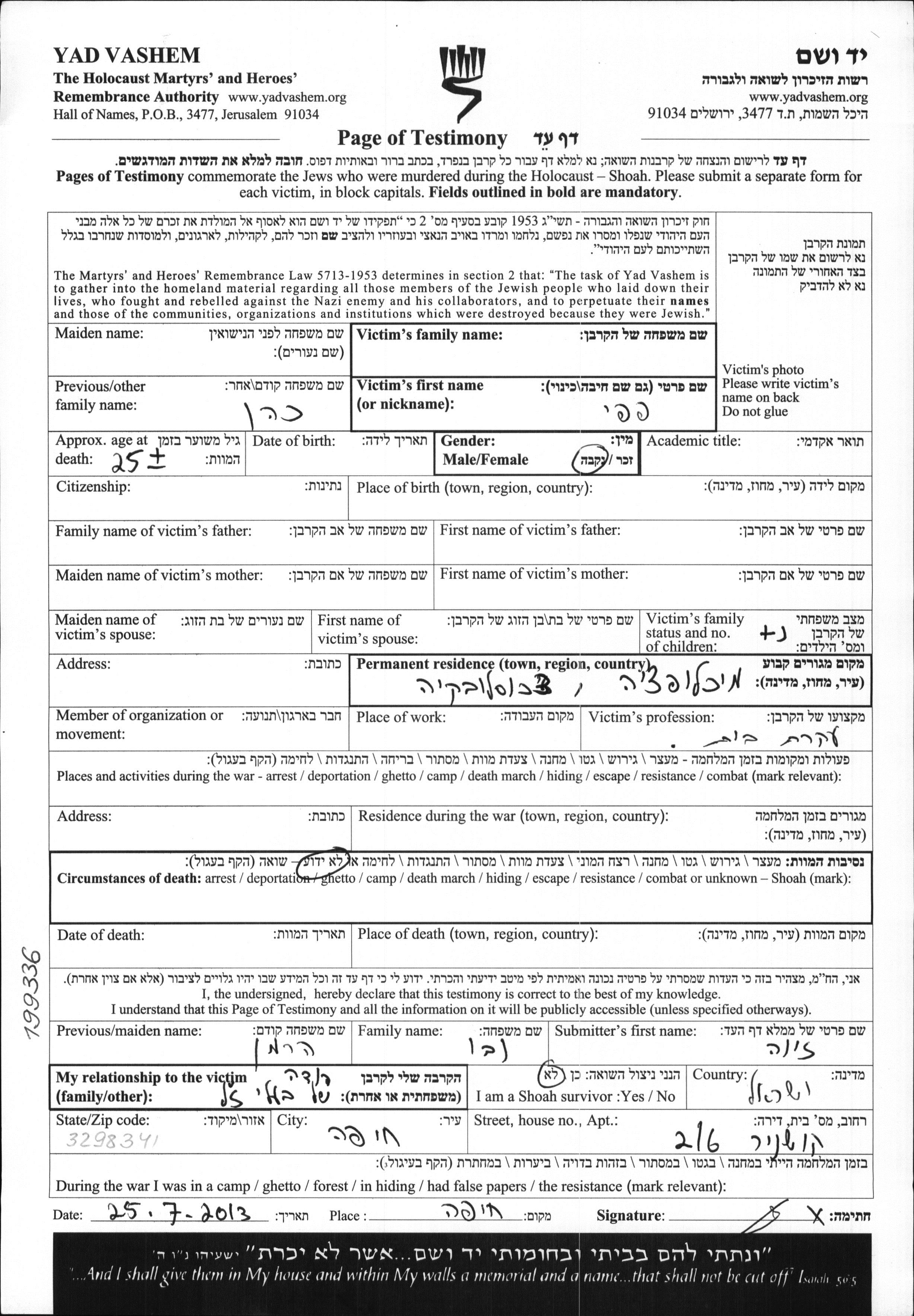 Поиск подателя Листа свидетельских показаний. Поиск по любому имени, включая уменьшительное или прозвище