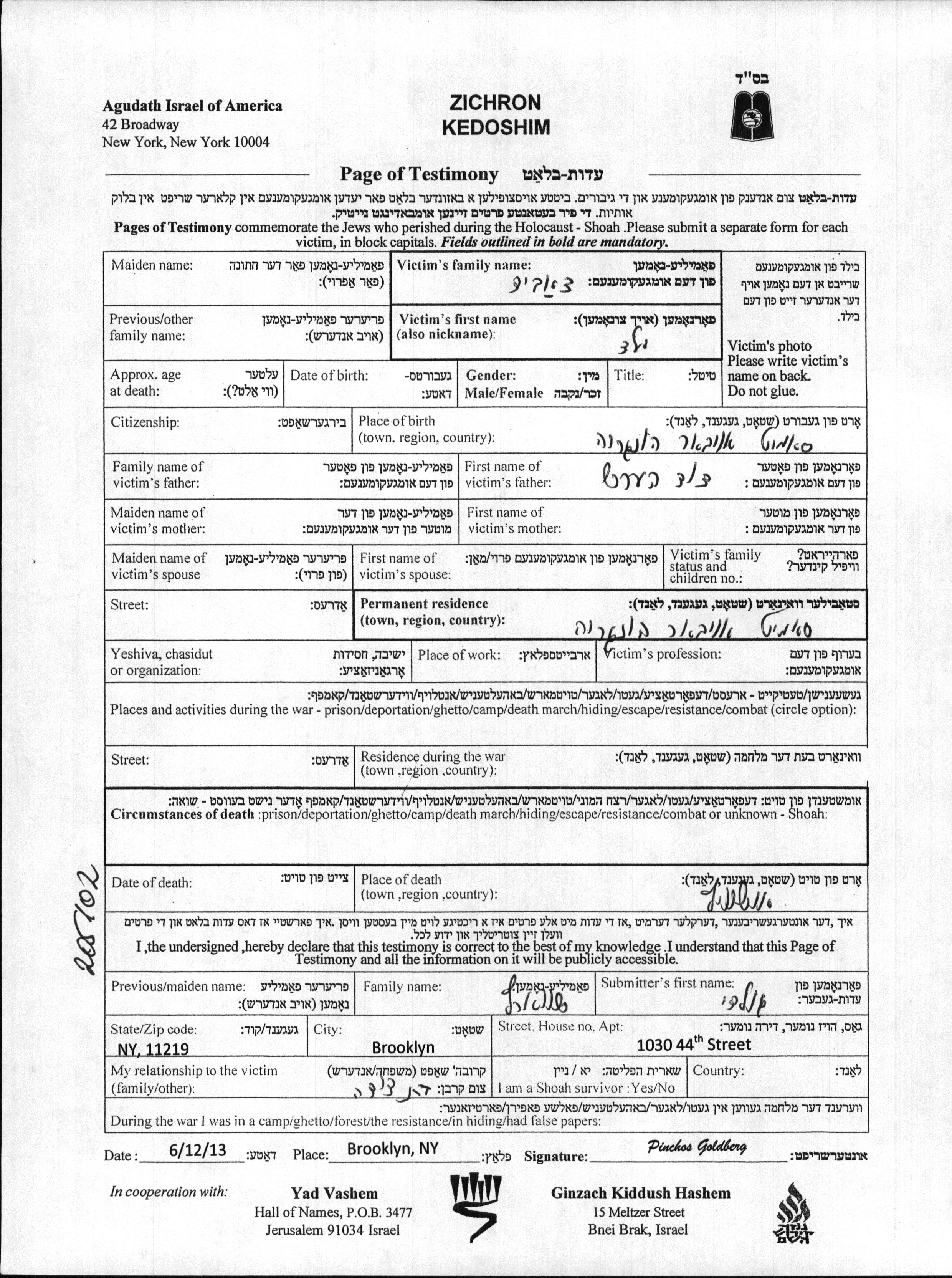 Яд Вашем - Листы свидетельских показаний Мемориального фонда