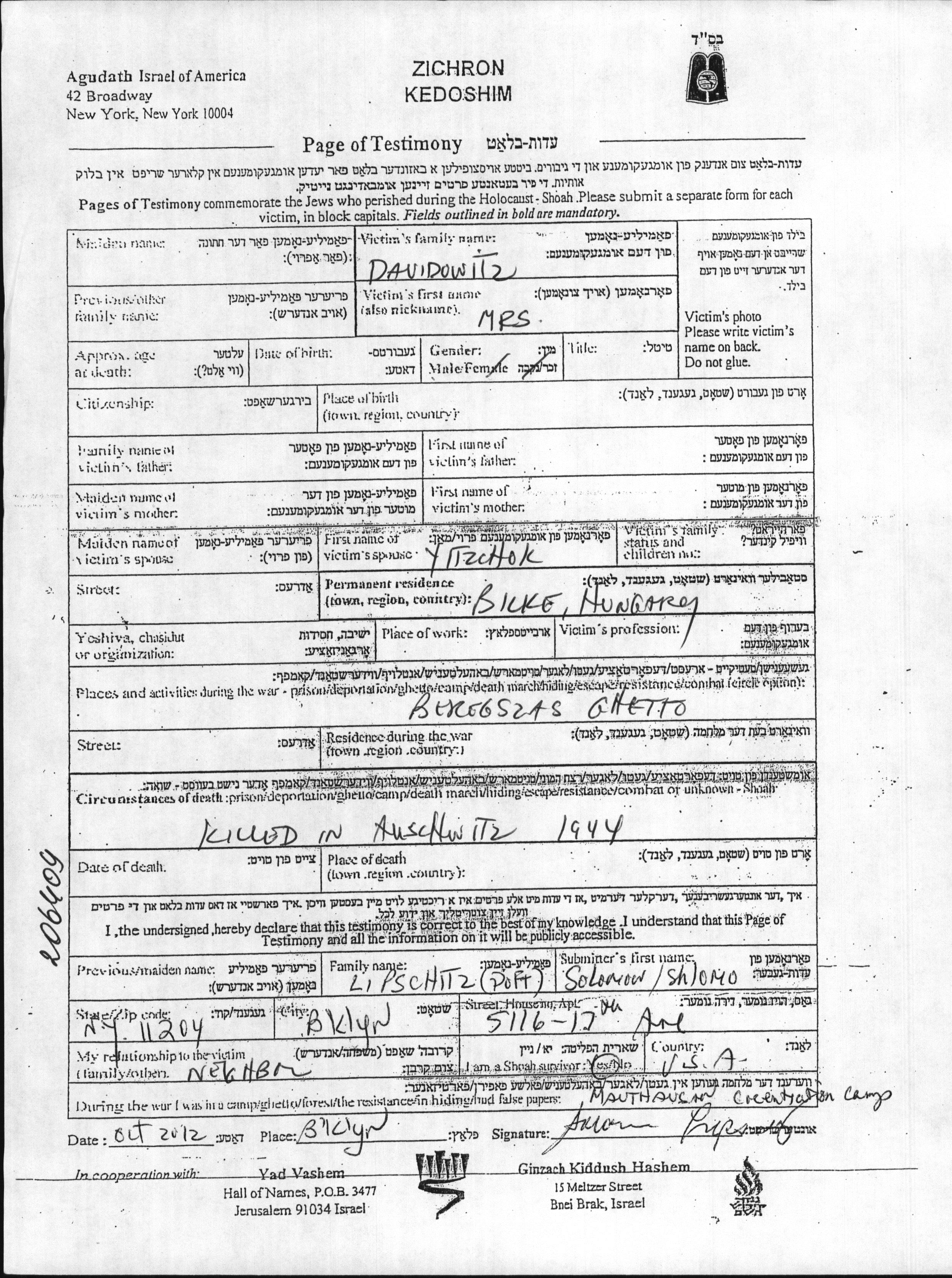 Поиск подателя Листа свидетельских показаний. Поиск по любому имени, включая уменьшительное или прозвище