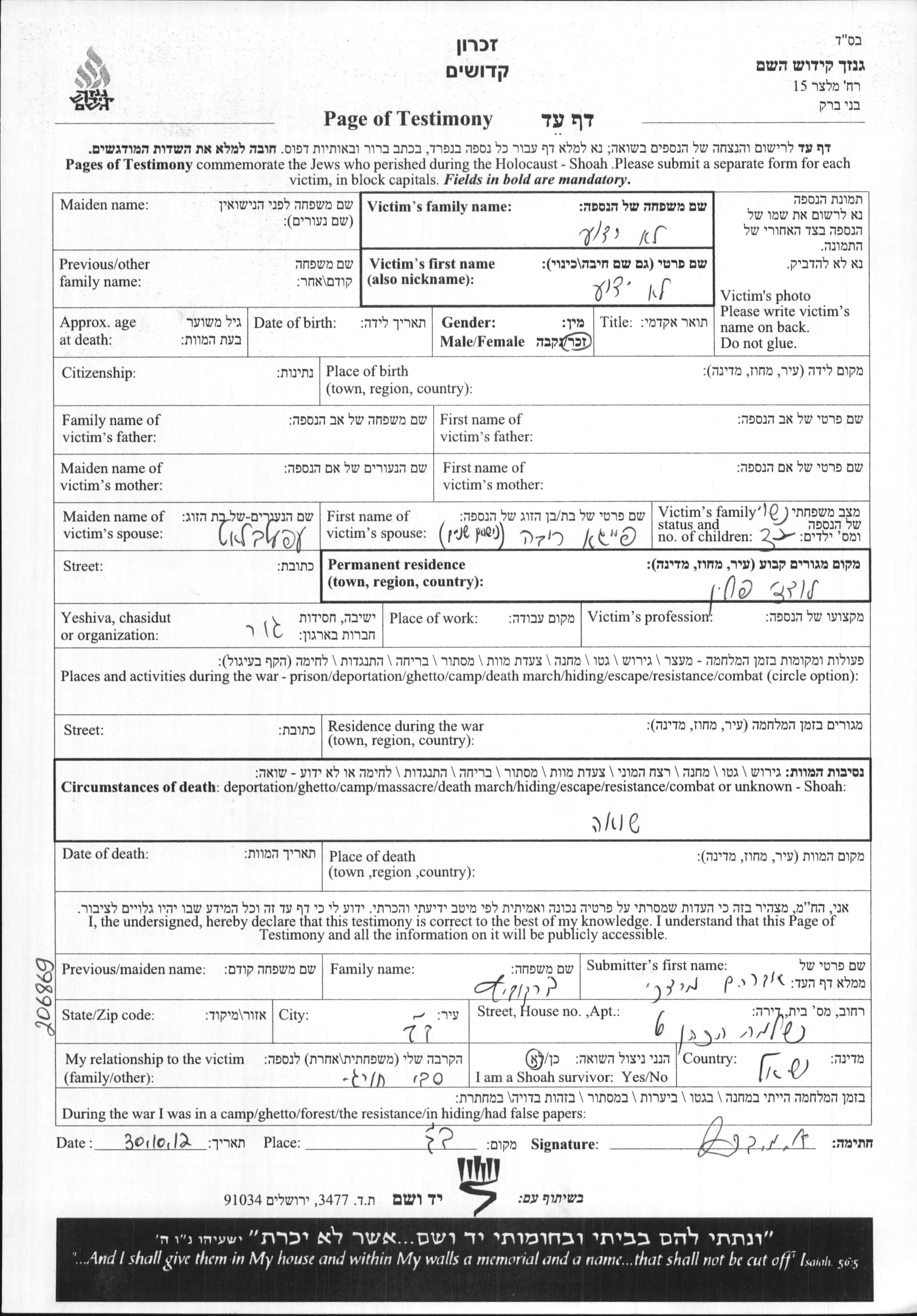 Яд Вашем - Листы свидетельских показаний Мемориального фонда