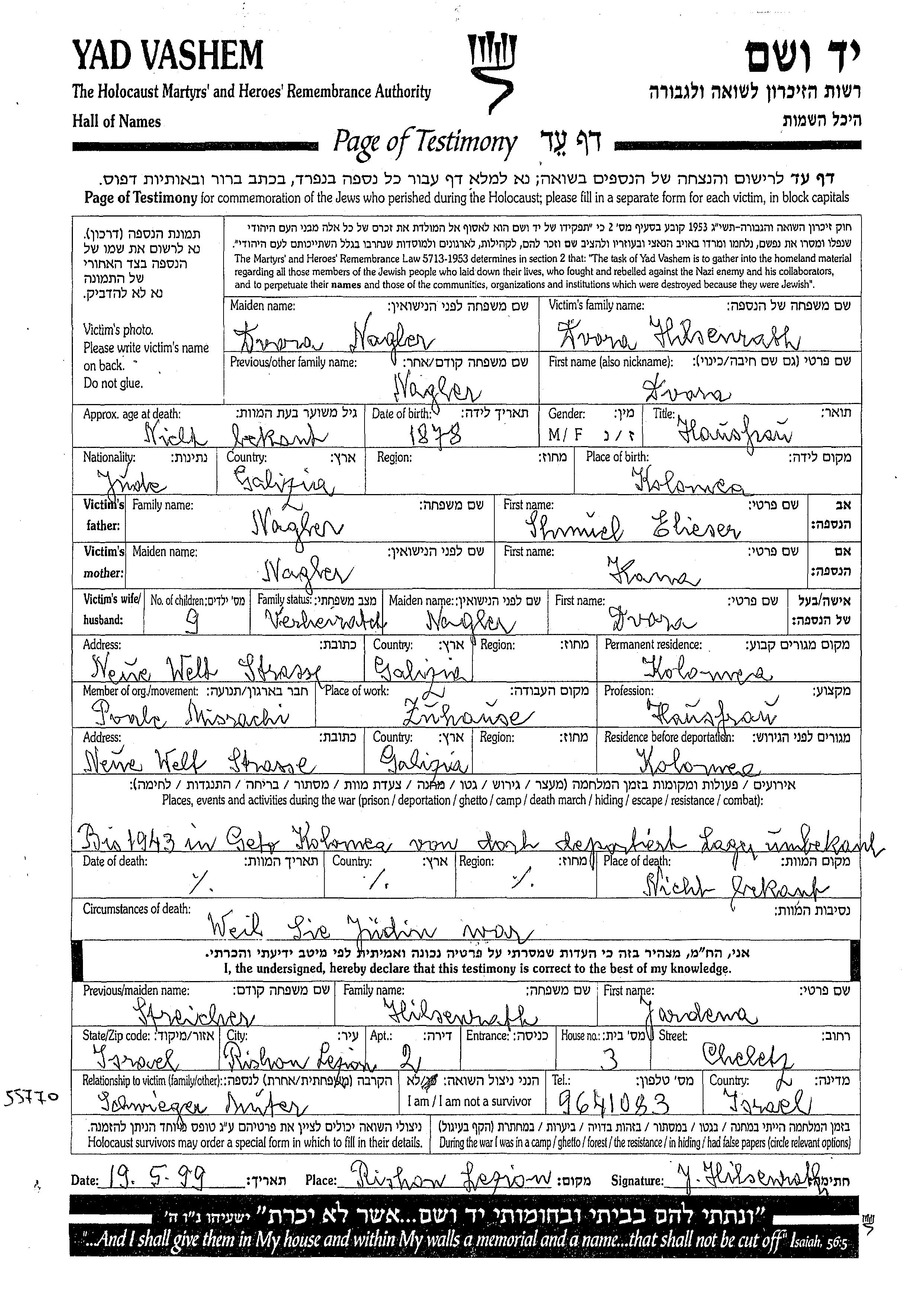 Яд Вашем - Листы свидетельских показаний Мемориального фонда