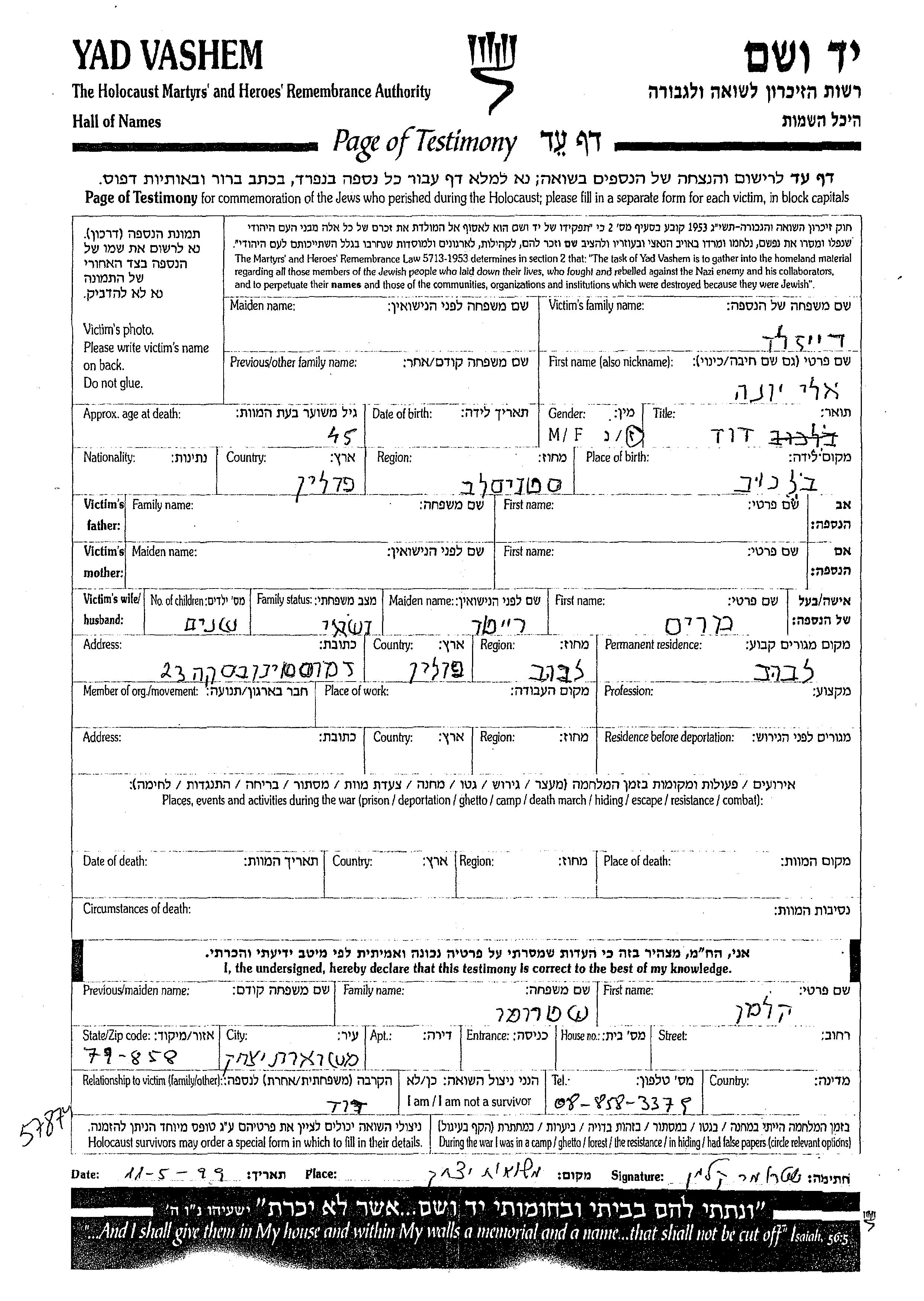Яд Вашем - Листы свидетельских показаний Мемориального фонда