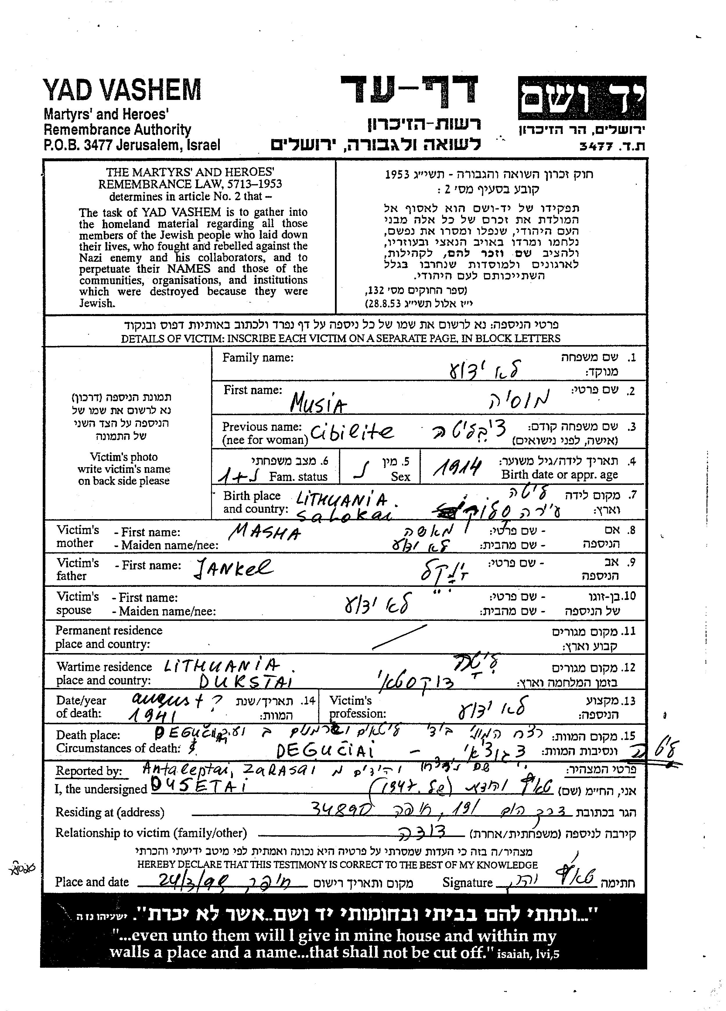 Во время войны/Шоа: