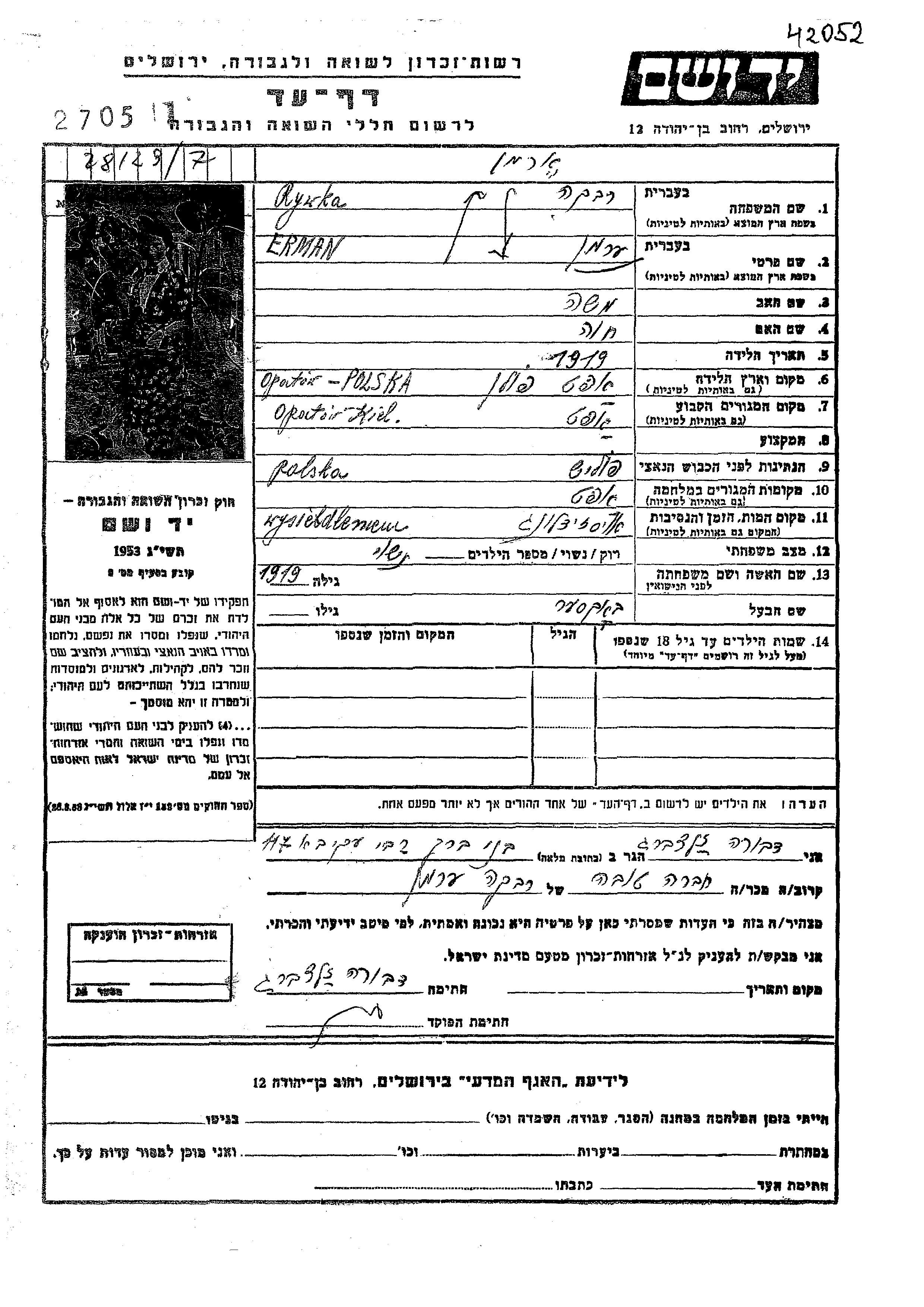 Яд Вашем - Листы свидетельских показаний Мемориального фонда