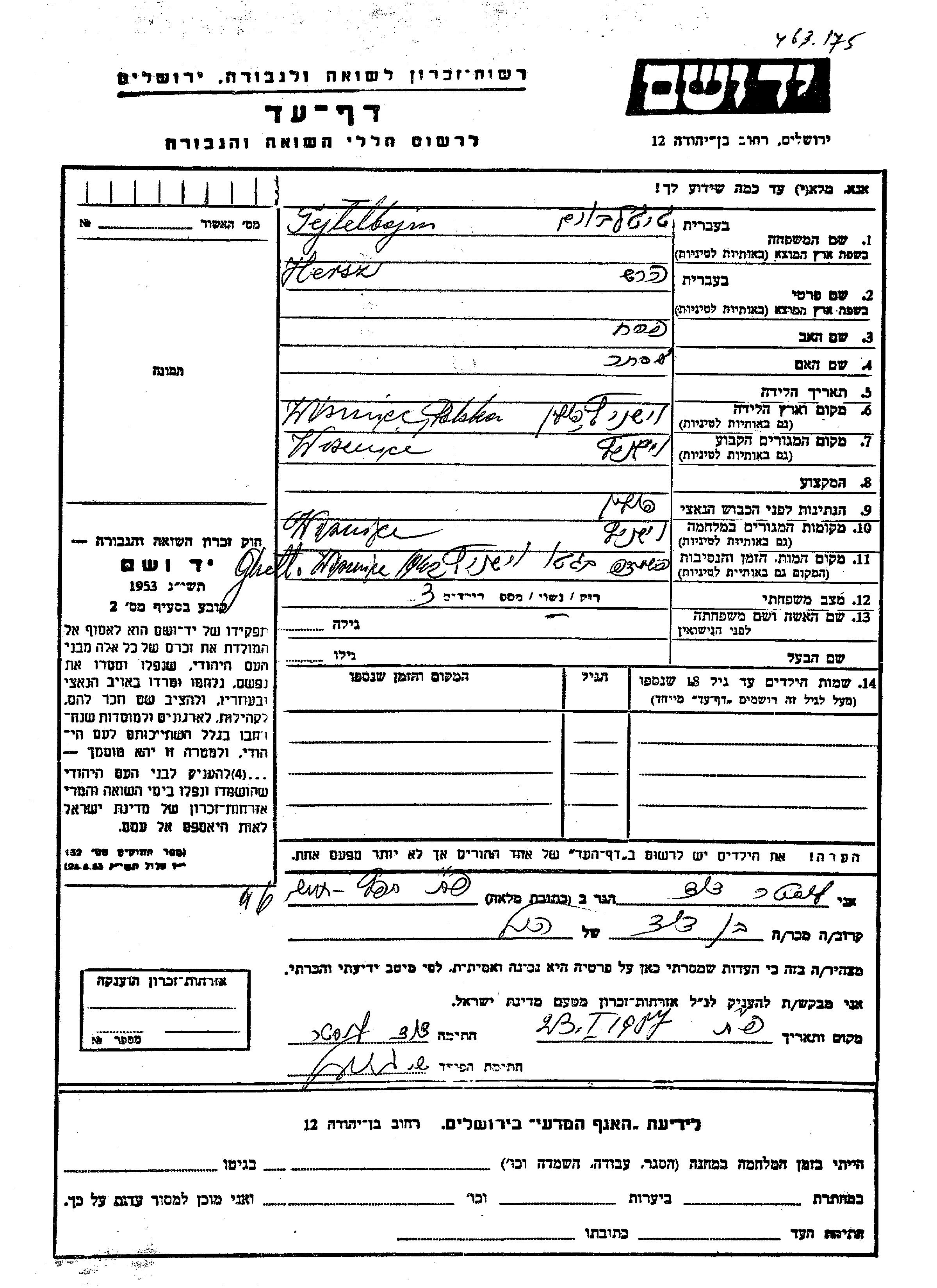 Яд Вашем - Листы свидетельских показаний Мемориального фонда