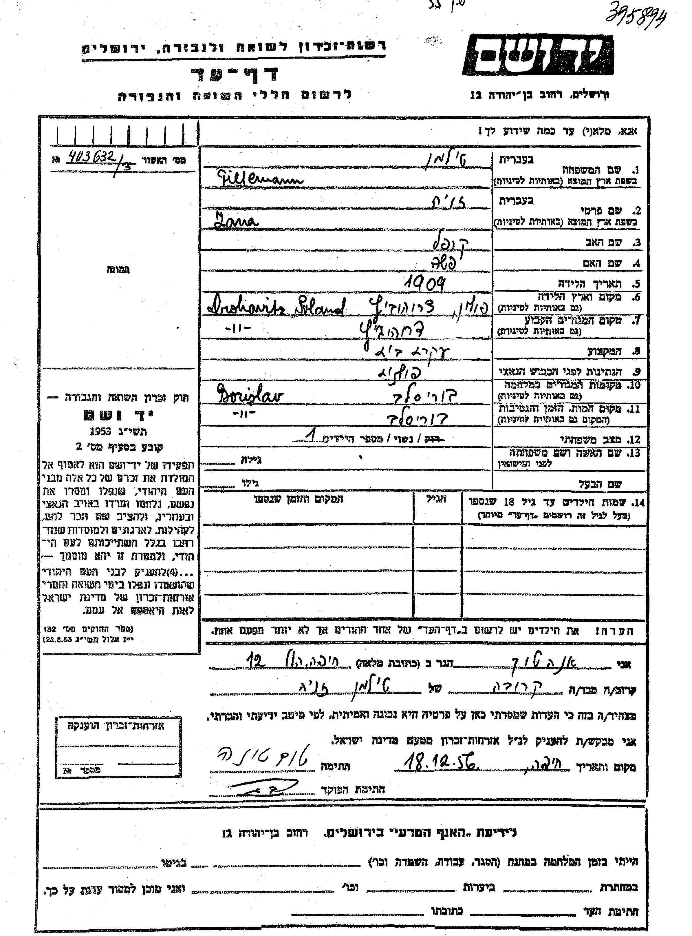 Яд Вашем - Листы свидетельских показаний Мемориального фонда