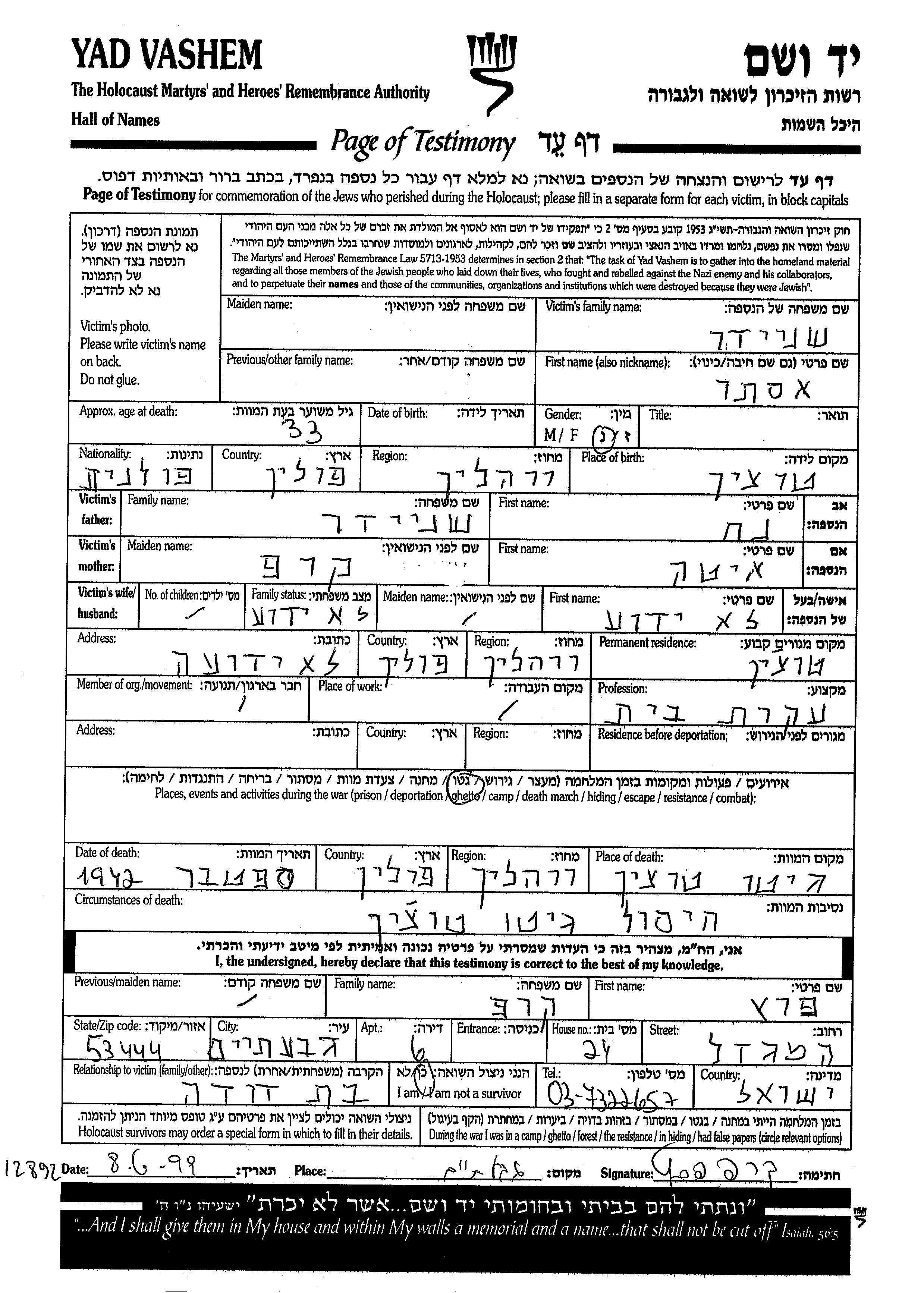 Во время Шоа: 1933-1945гг; точно или в диапазоне 2-5 лет