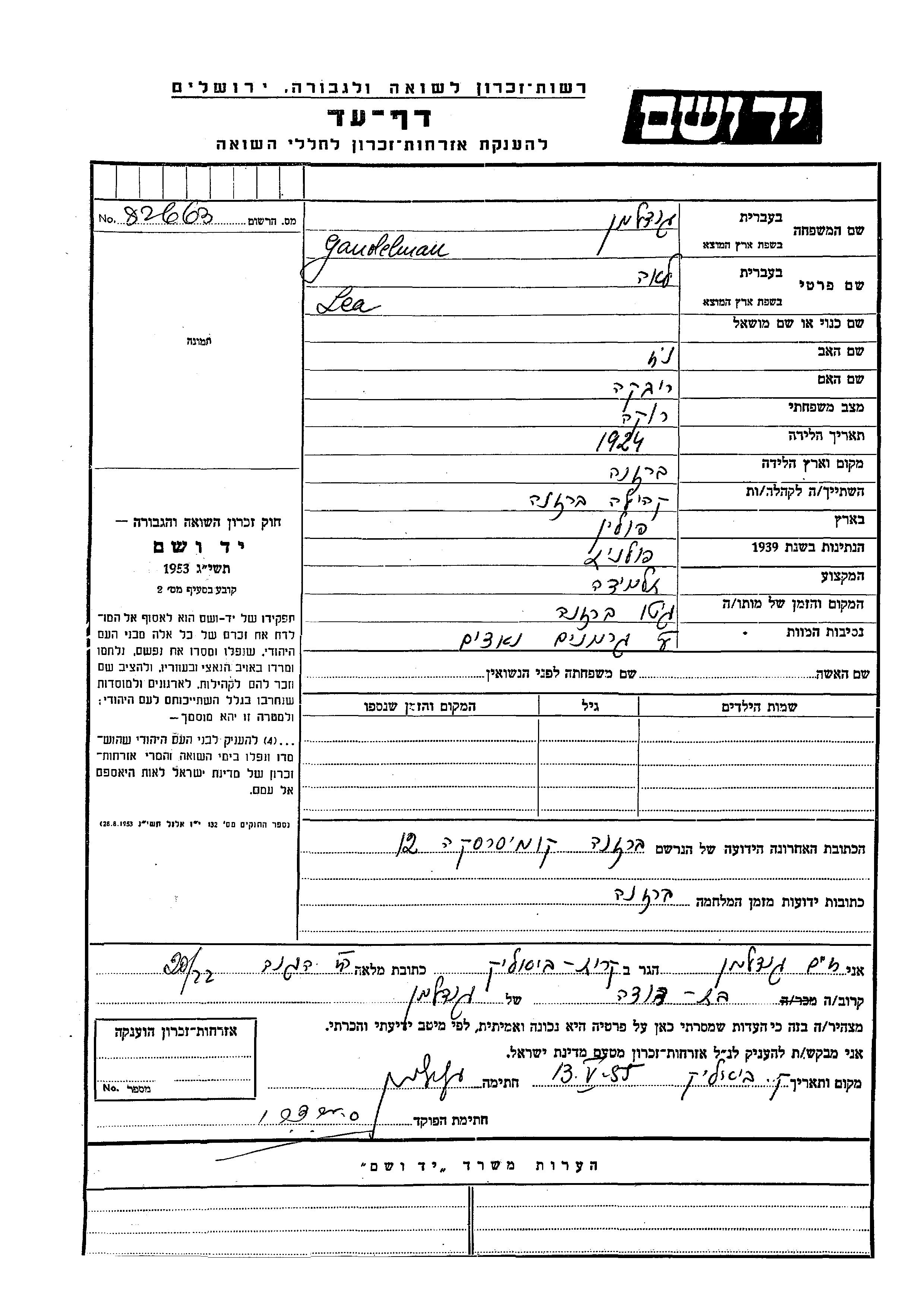 Гандельман Лея 1924 Брезно, Лист свидетельских показаний