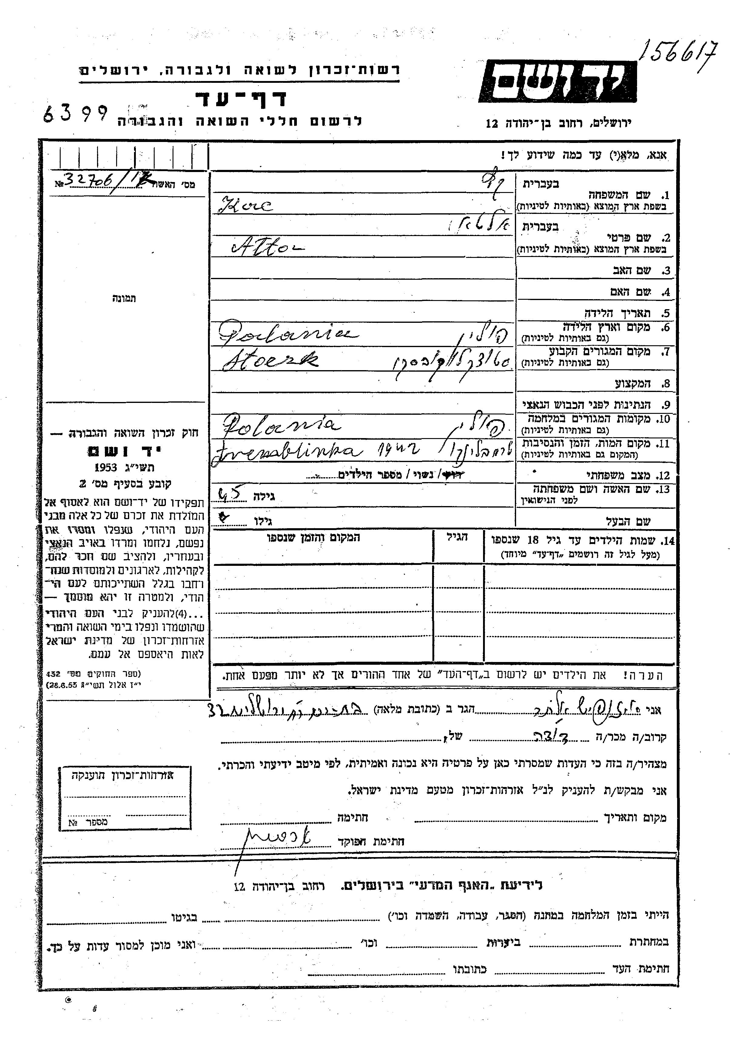 Яд Вашем - Листы свидетельских показаний Мемориального фонда