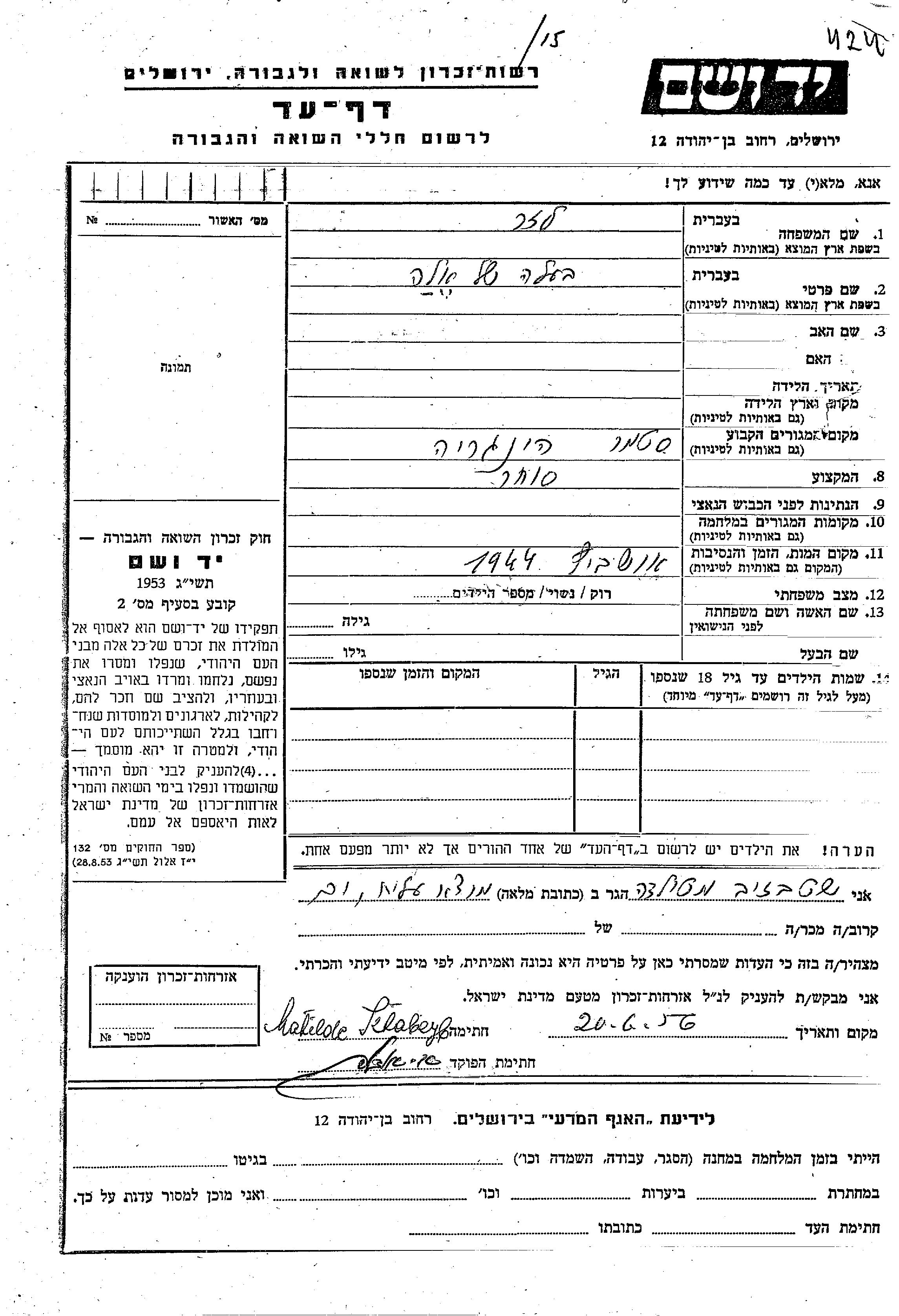 Яд Вашем - Листы свидетельских показаний Мемориального фонда