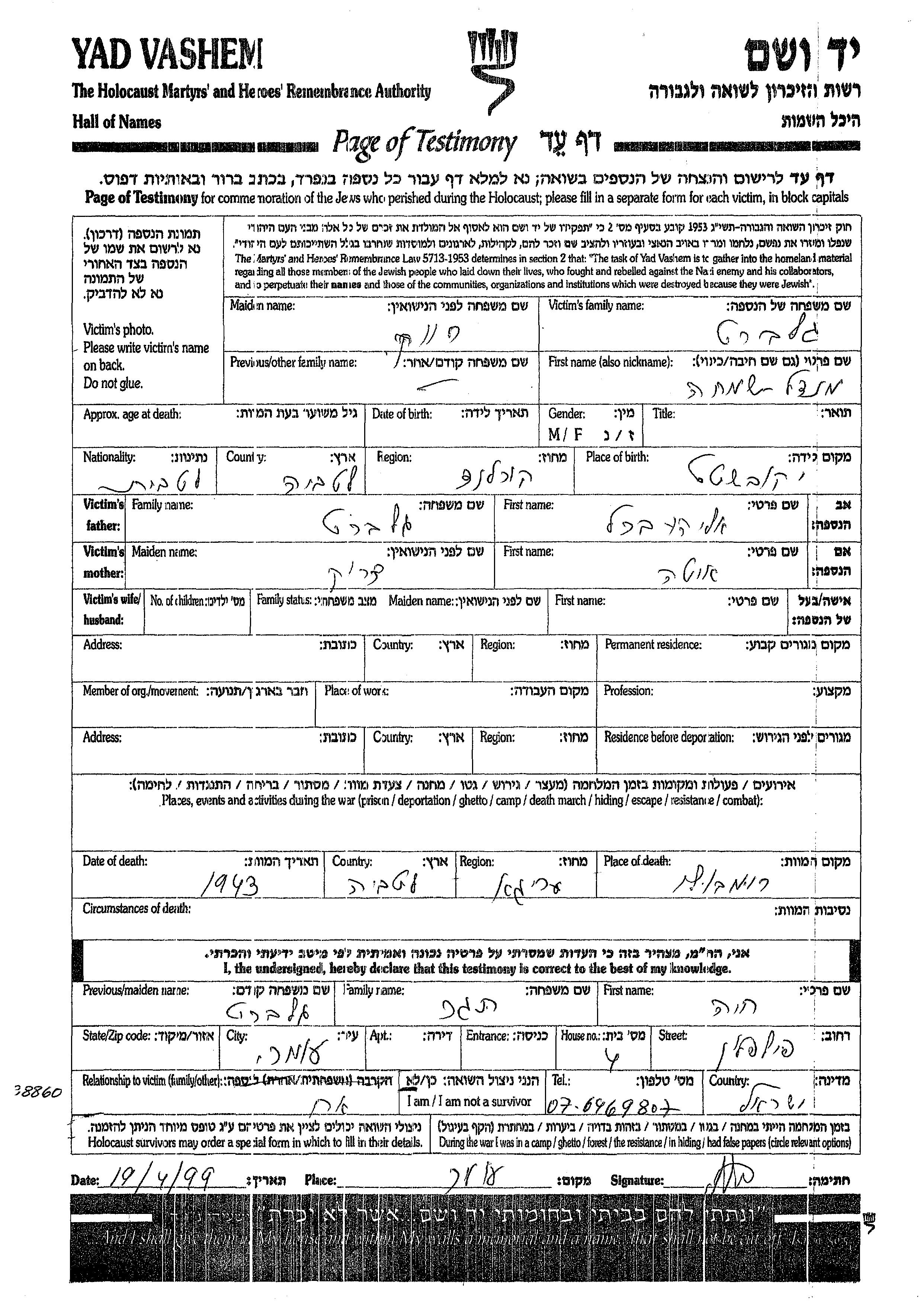 Яд Вашем - Листы свидетельских показаний Мемориального фонда
