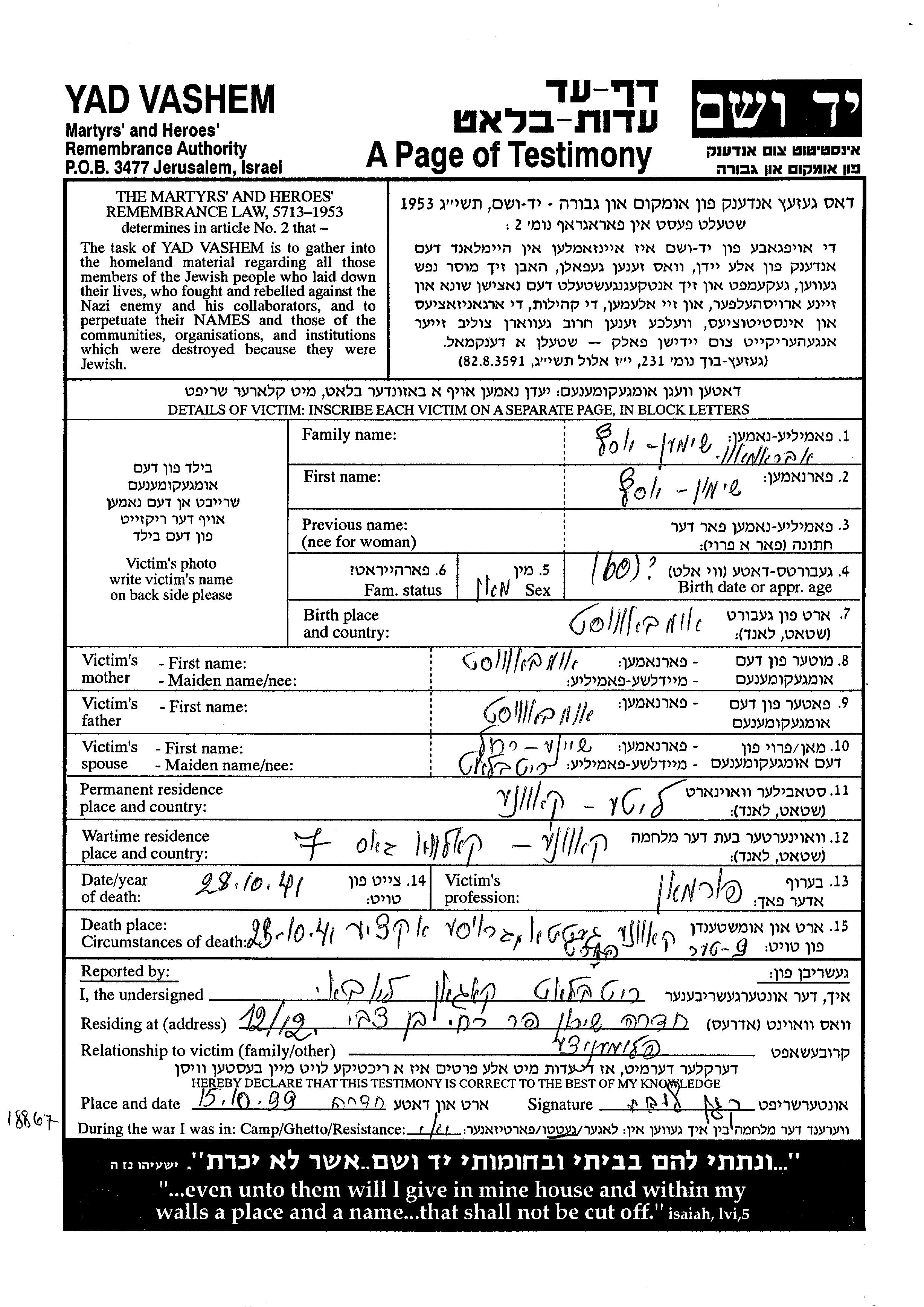 Во время Шоа евреев уничтожали разными способами: газовые камеры, расстрелы, их заживо хоронили или сжигали, непосильным принудительным трудом, голодом, эпидемиями, отсутствием минимальных гигиенических условий и медицинского обслуживания, и т.д. Некоторые евреи добровольно расстались со своей жизнью, чтобы избежать ареста и дальнейших преследований или чтобы покончить с безысходностью и бесконечными страданиями. Десятки тысяч еврейских солдат, служивших в Советской армии и попавших в плен, , были отобраны как евреи и убиты. Многие были зарегистрированы как «пропавшие без вести».