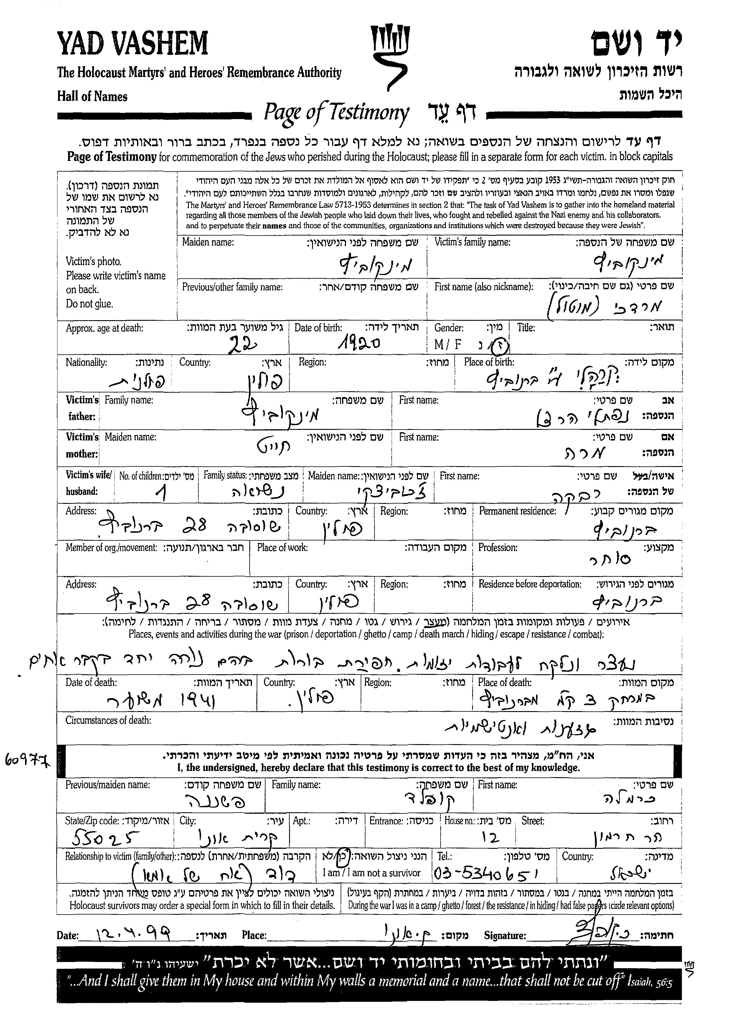 Яд Вашем - Листы свидетельских показаний Мемориального фонда