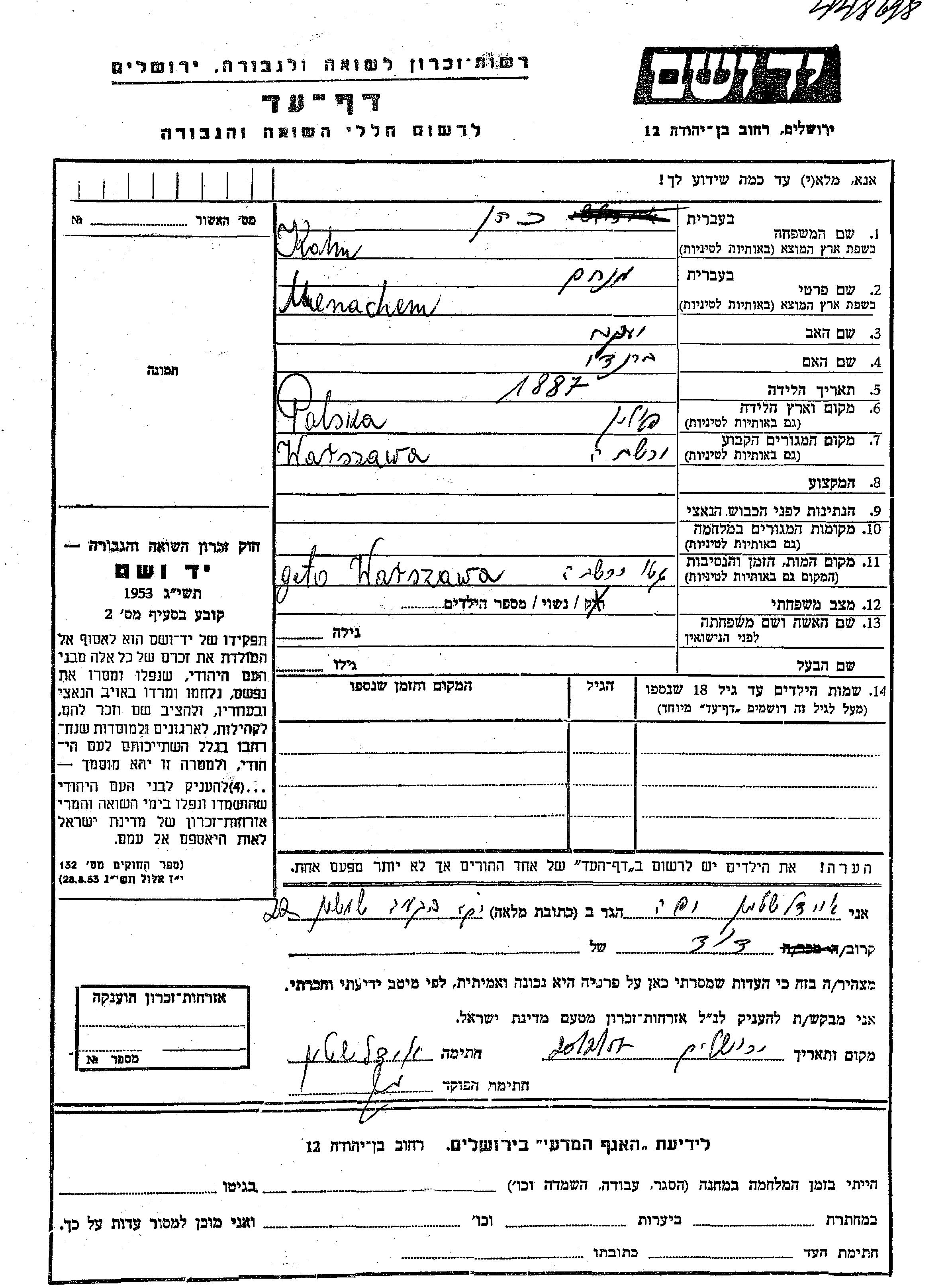 Яд Вашем - Листы свидетельских показаний Мемориального фонда