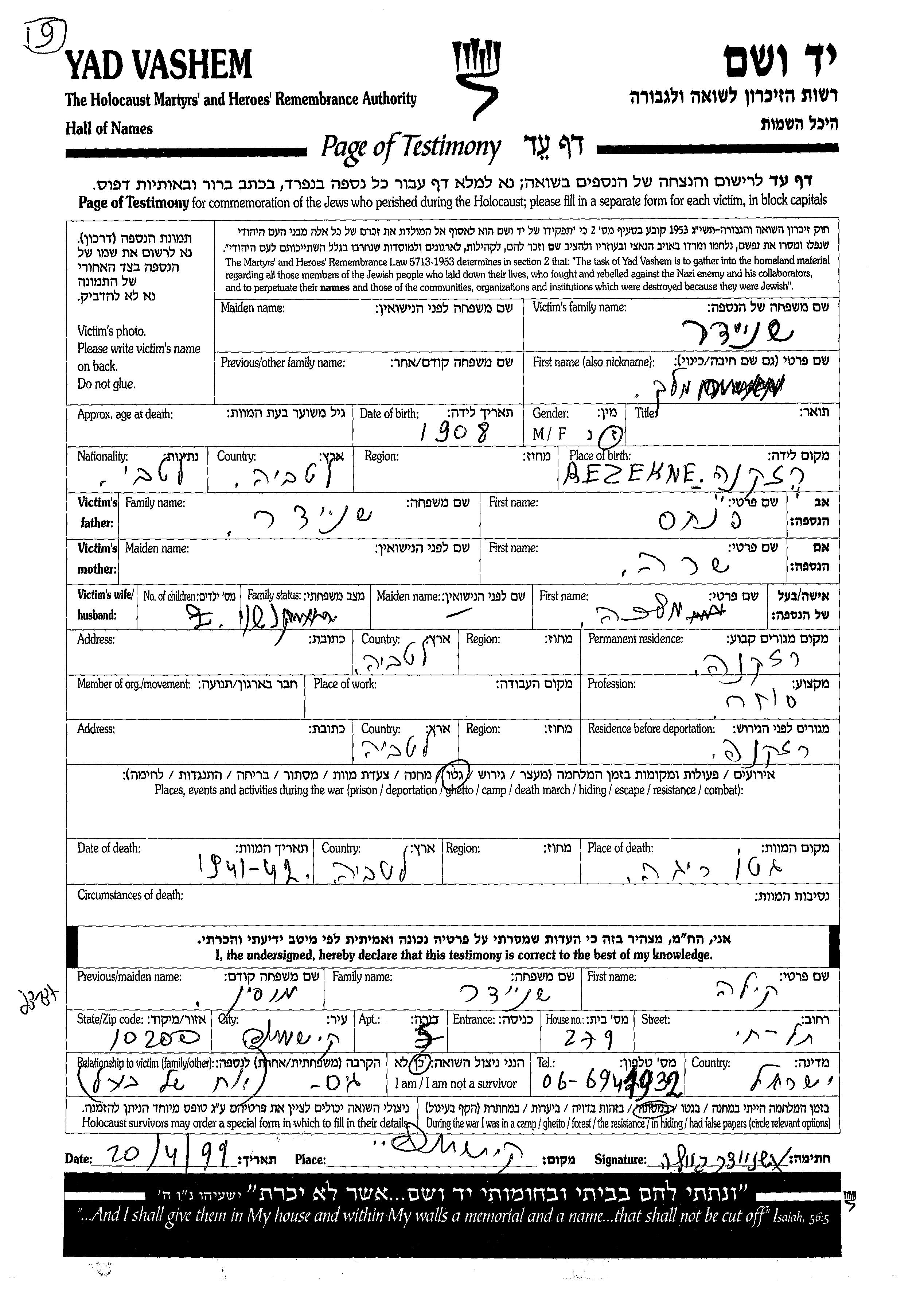Яд Вашем - Листы свидетельских показаний Мемориального фонда