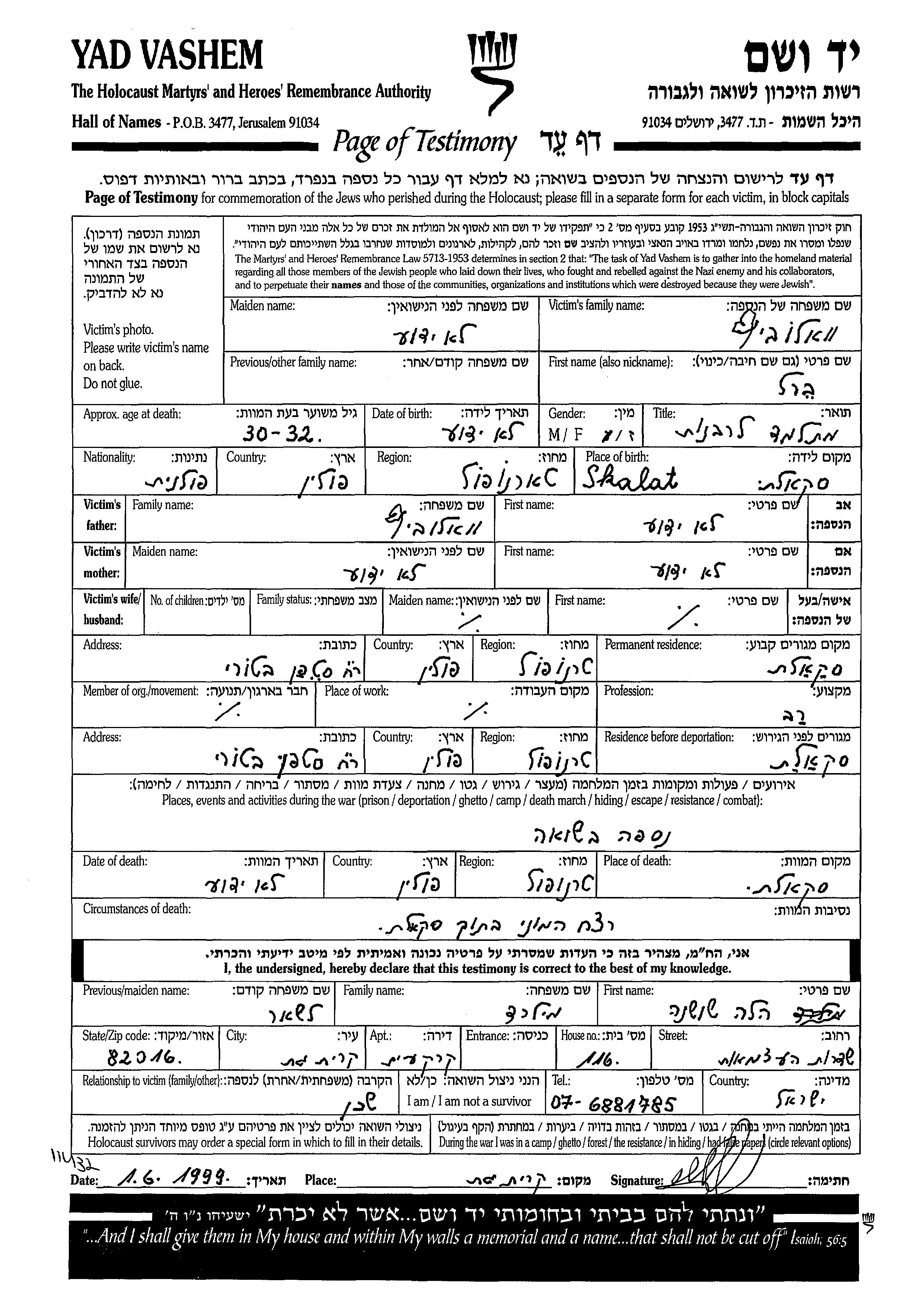 Яд Вашем - Листы свидетельских показаний Мемориального фонда