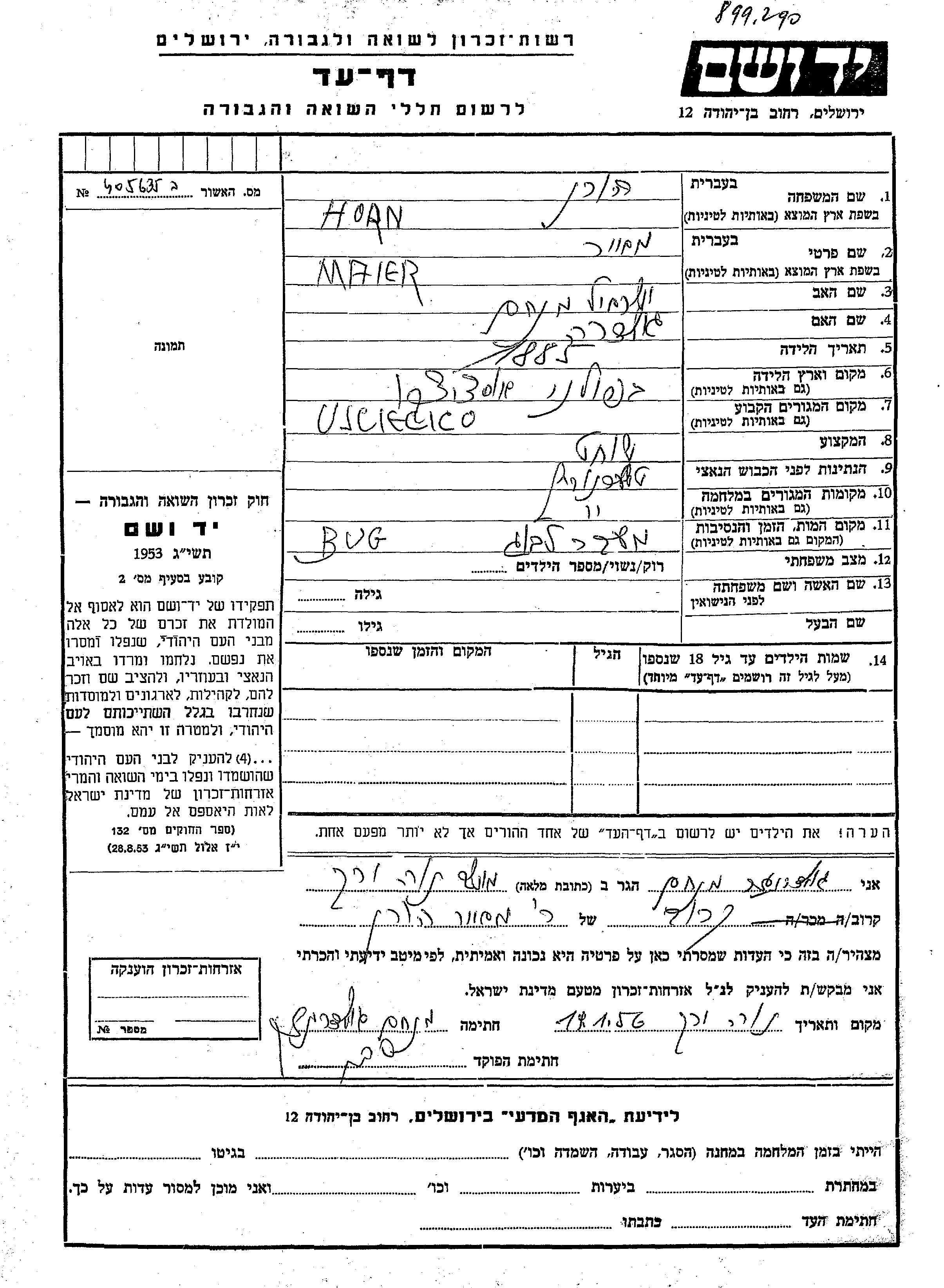 Яд Вашем - Листы свидетельских показаний Мемориального фонда