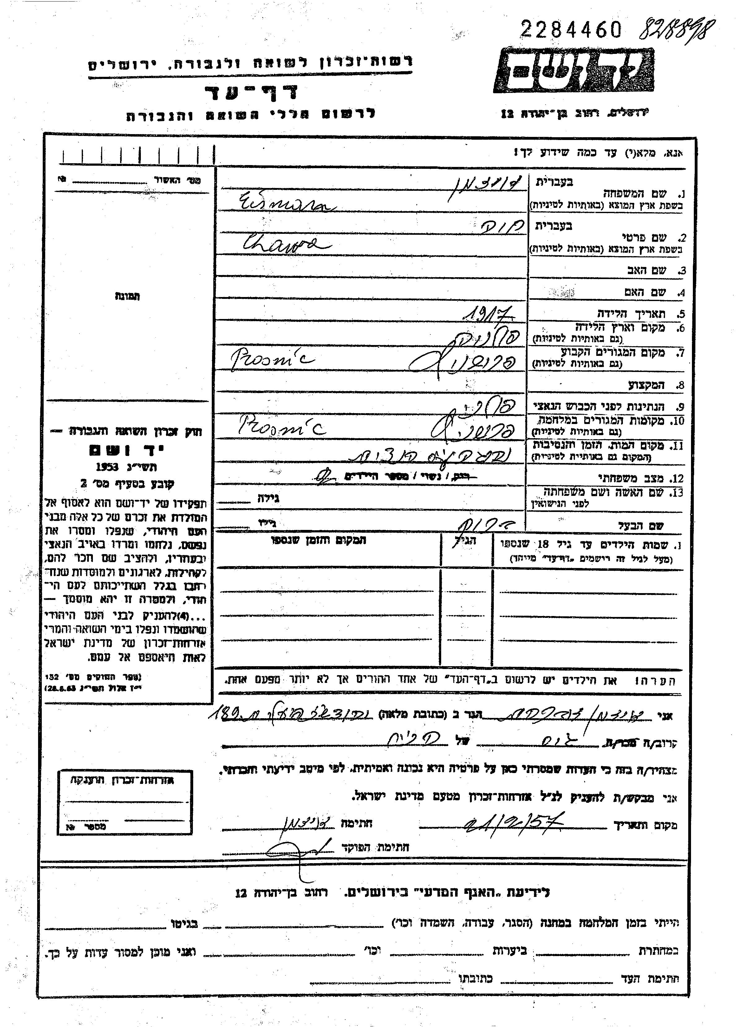 Яд Вашем - Листы свидетельских показаний Мемориального фонда