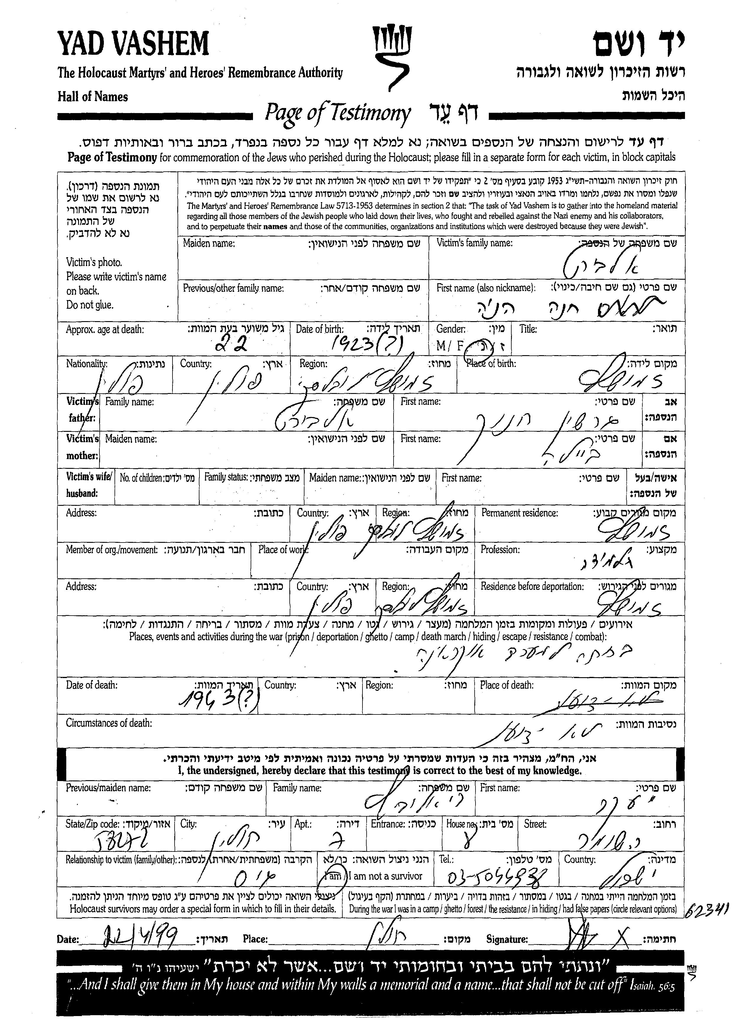 Яд Вашем - Листы свидетельских показаний Мемориального фонда