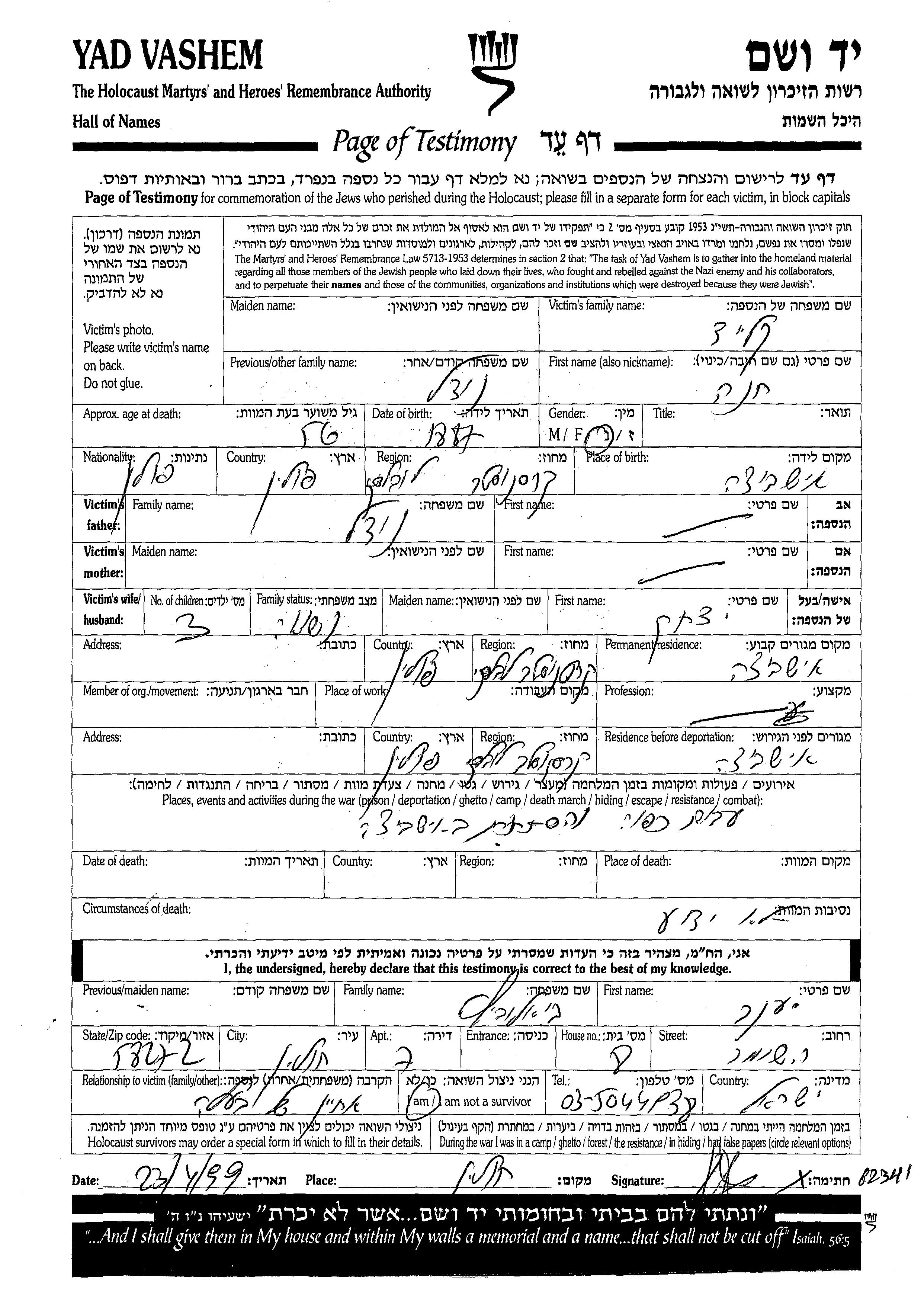 Яд Вашем - Листы свидетельских показаний Мемориального фонда