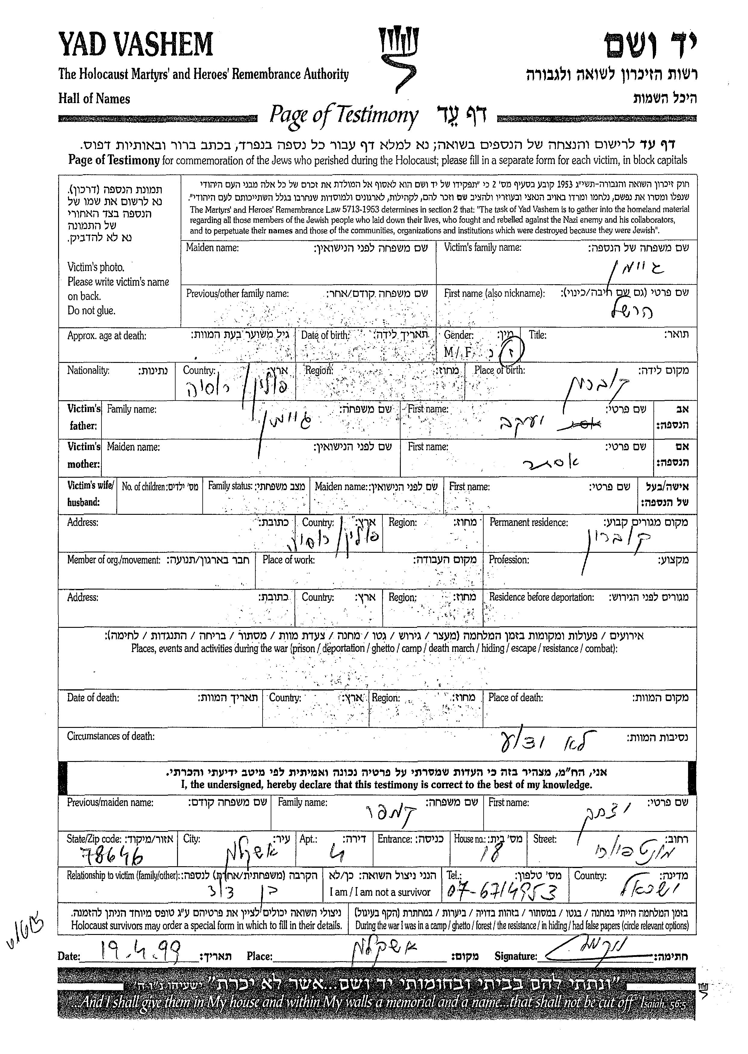 Любое место нахождения во время войны: город/село или гетто/лагерь, или область/район, или страна