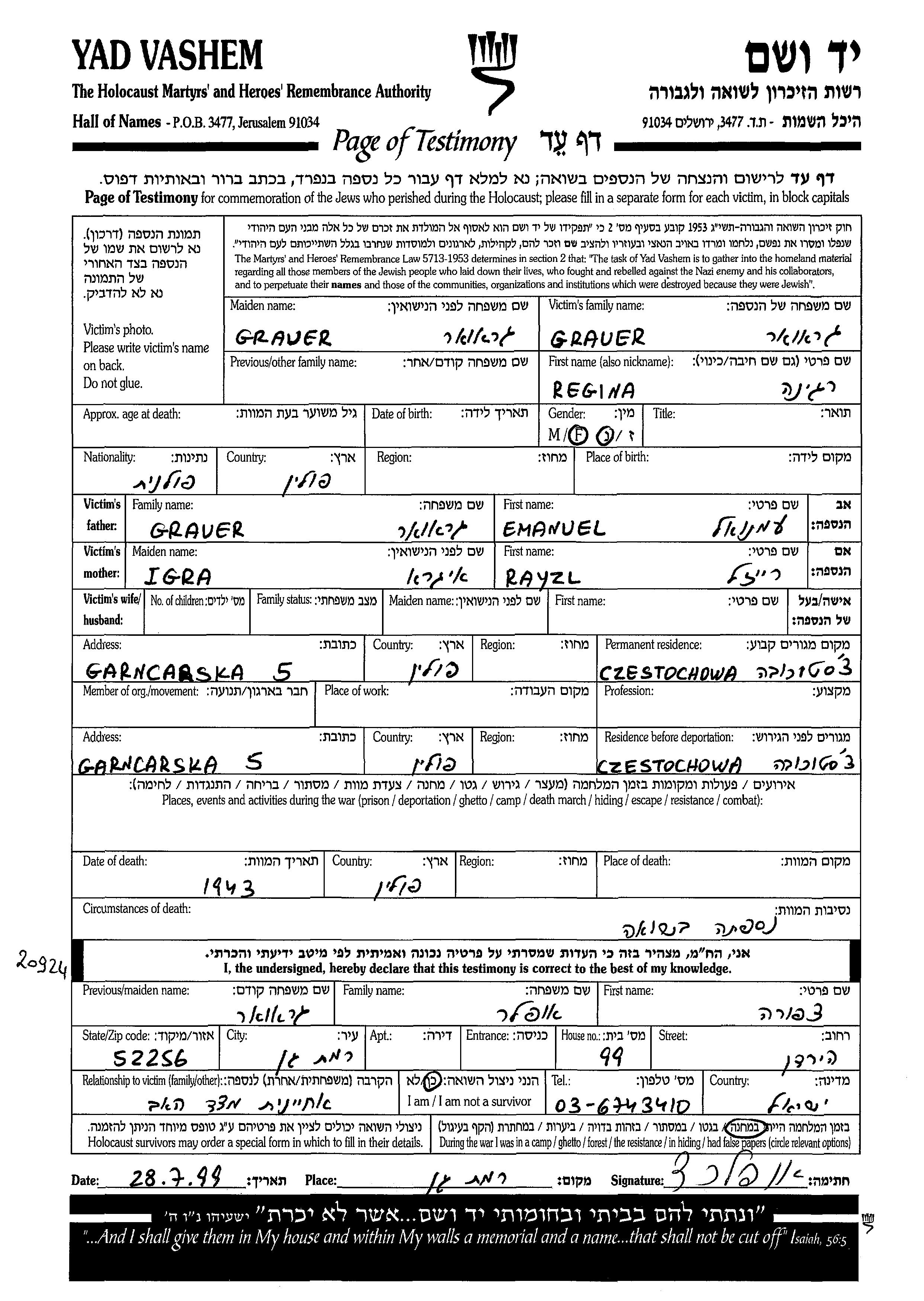 Место жительства перед войной: город/село или область/район, или страна