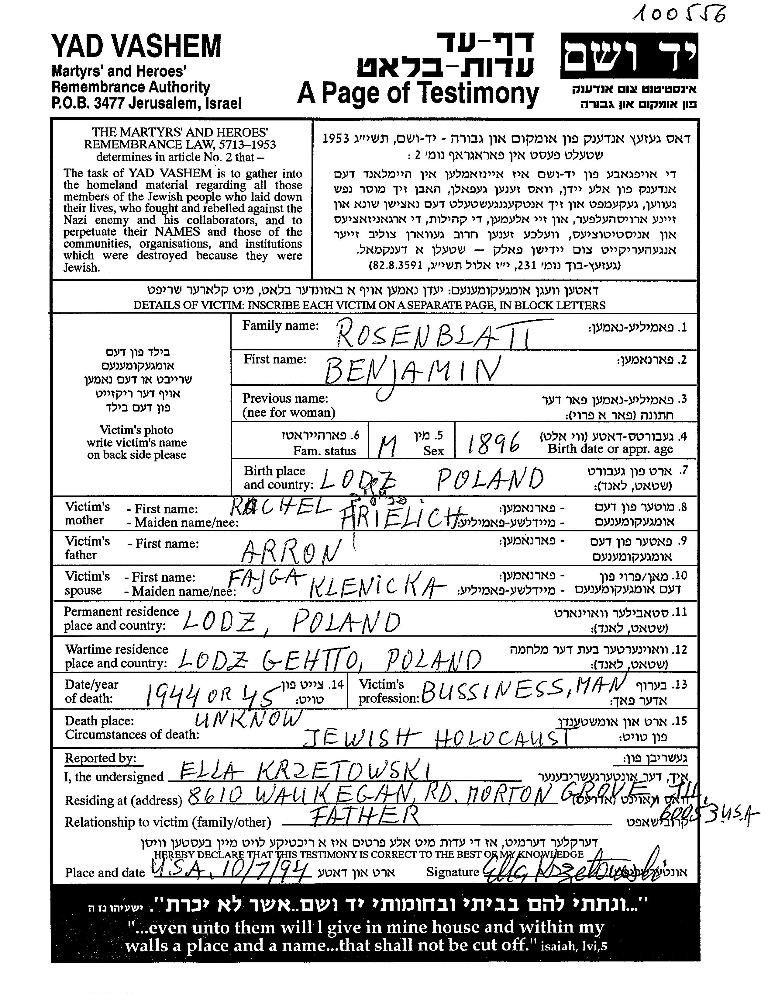 Поиск подателя Листа свидетельских показаний. Поиск по любому имени, включая уменьшительное или прозвище