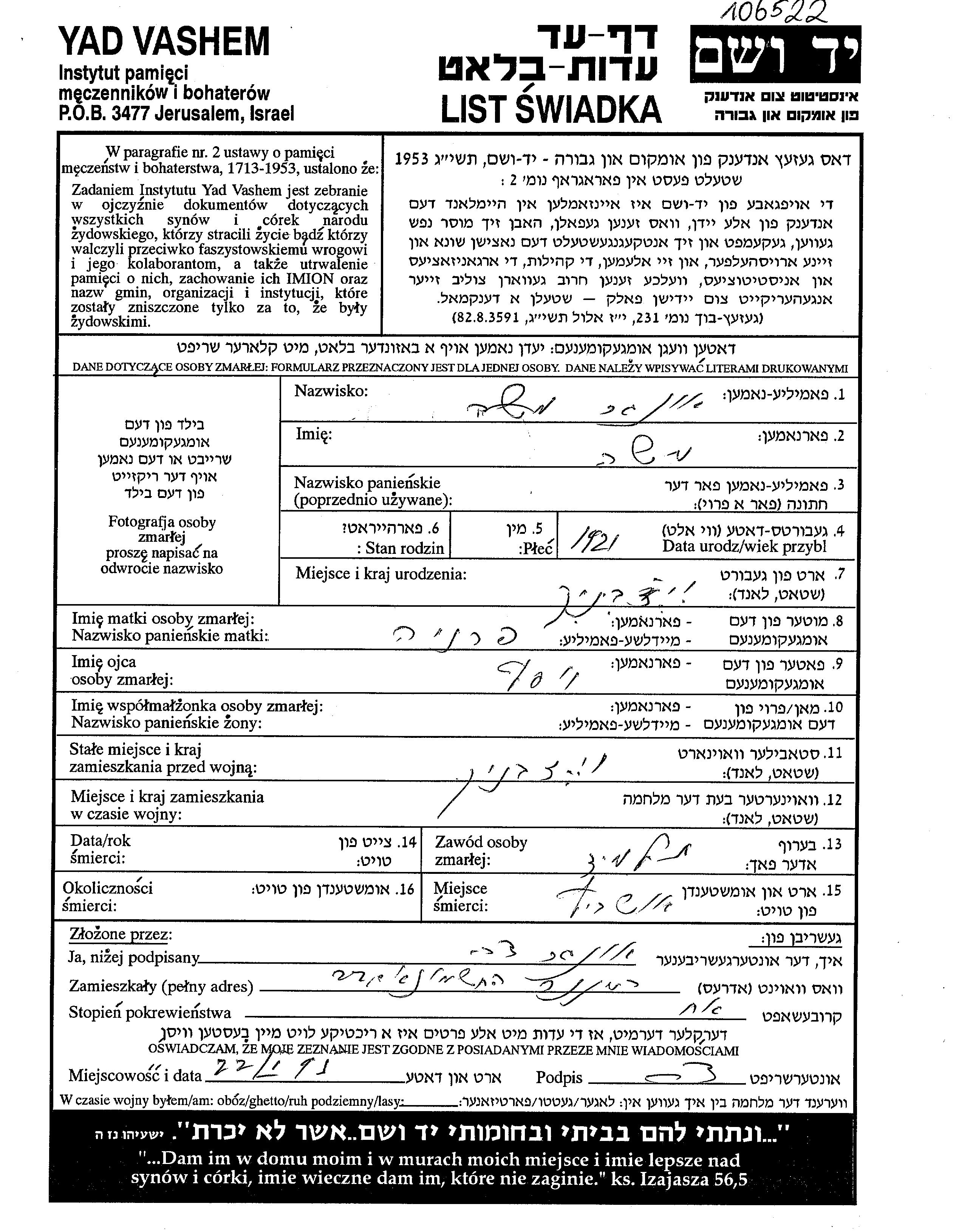 Поиск по фамилии подателя Листа свидетельских показаний. Этот поиск включает в себя также результаты по девичьей фамилии