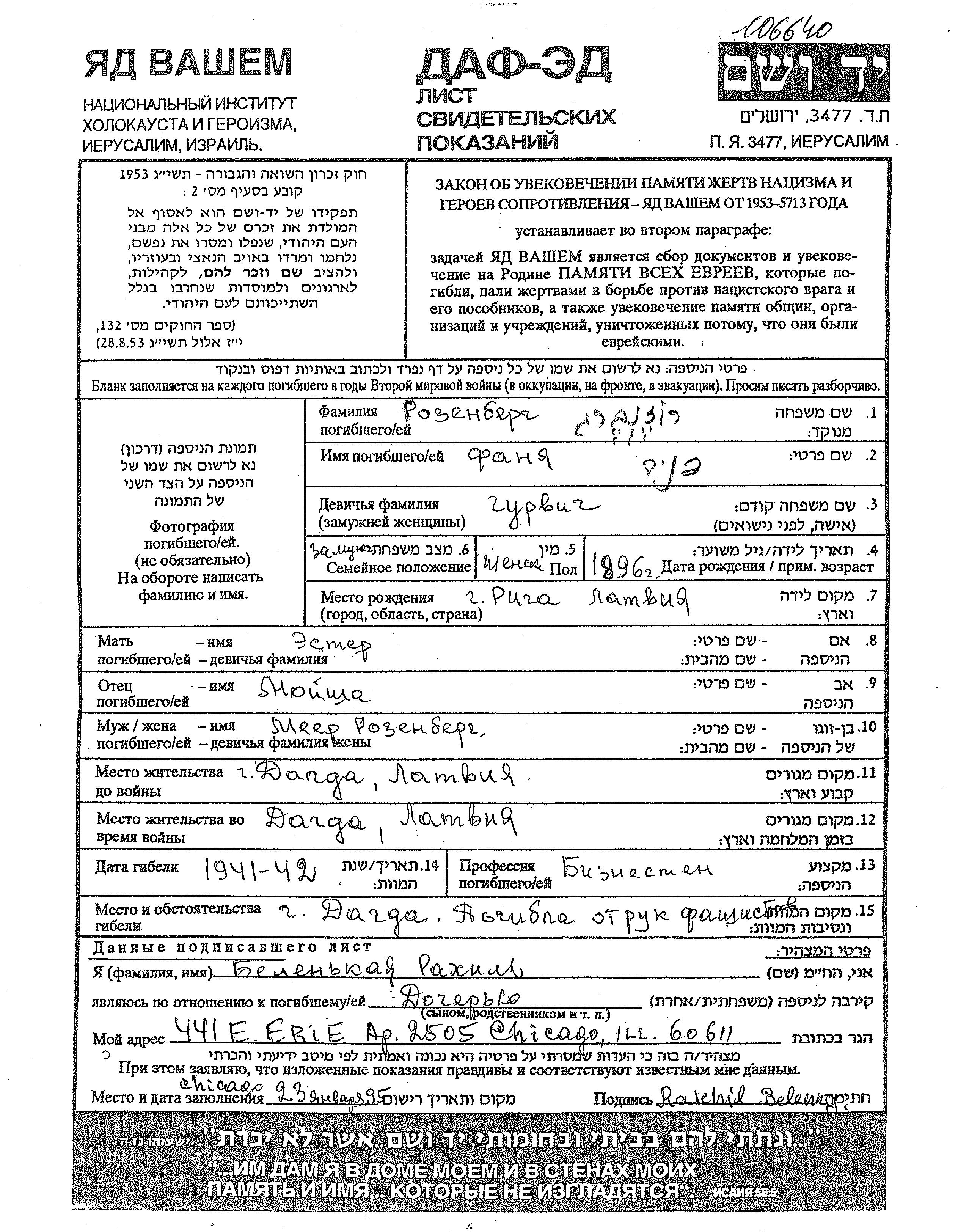 Розенберг Фаня 1896 Дагда, Латвия Лист свидетельских показаний