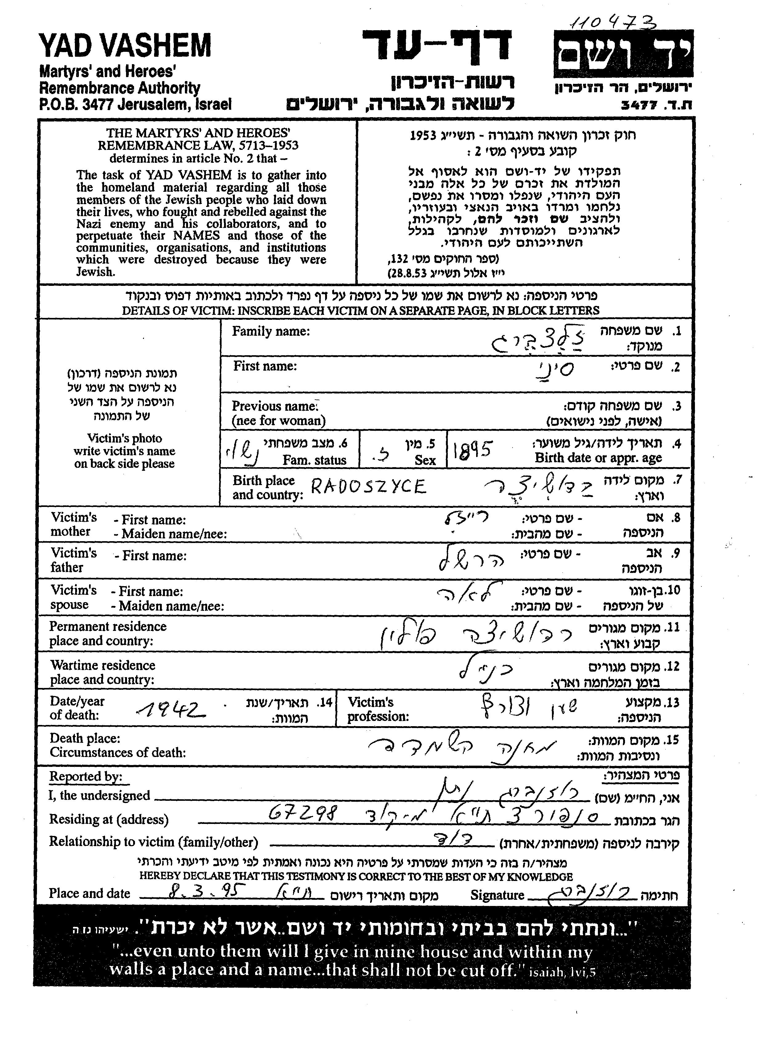 Во время Шоа евреев уничтожали разными способами: газовые камеры, расстрелы, их заживо хоронили или сжигали, непосильным принудительным трудом, голодом, эпидемиями, отсутствием минимальных гигиенических условий и медицинского обслуживания, и т.д. Некоторые евреи добровольно расстались со своей жизнью, чтобы избежать ареста и дальнейших преследований или чтобы покончить с безысходностью и бесконечными страданиями.
