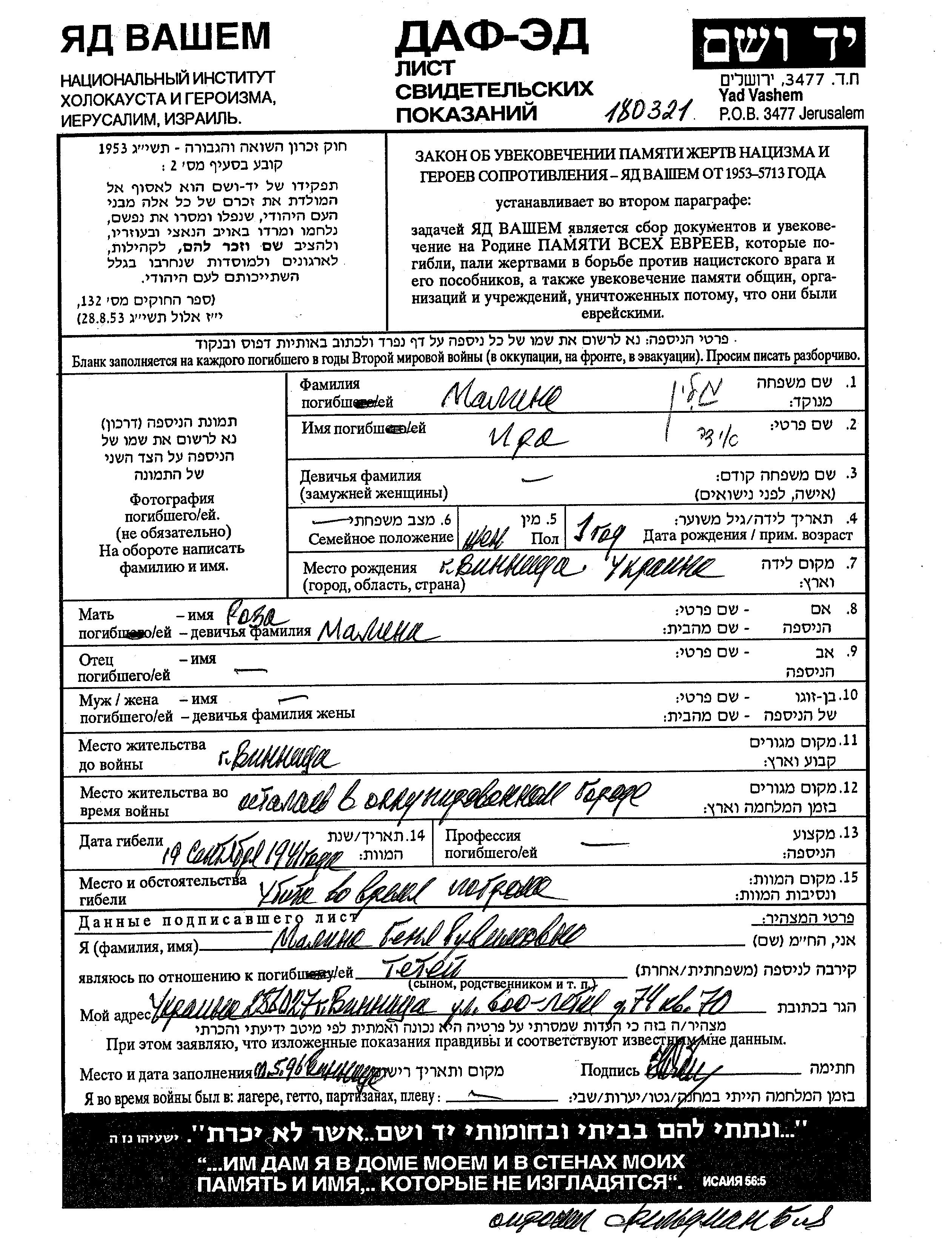 Во время Шоа евреев уничтожали разными способами: газовые камеры, расстрелы, их заживо хоронили или сжигали, непосильным принудительным трудом, голодом, эпидемиями, отсутствием минимальных гигиенических условий и медицинского обслуживания, и т.д. Некоторые евреи добровольно расстались со своей жизнью, чтобы избежать ареста и дальнейших преследований или чтобы покончить с безысходностью и бесконечными страданиями. Десятки тысяч еврейских солдат, служивших в Советской армии и попавших в плен, , были отобраны как евреи и убиты. Многие были зарегистрированы как «пропавшие без вести».