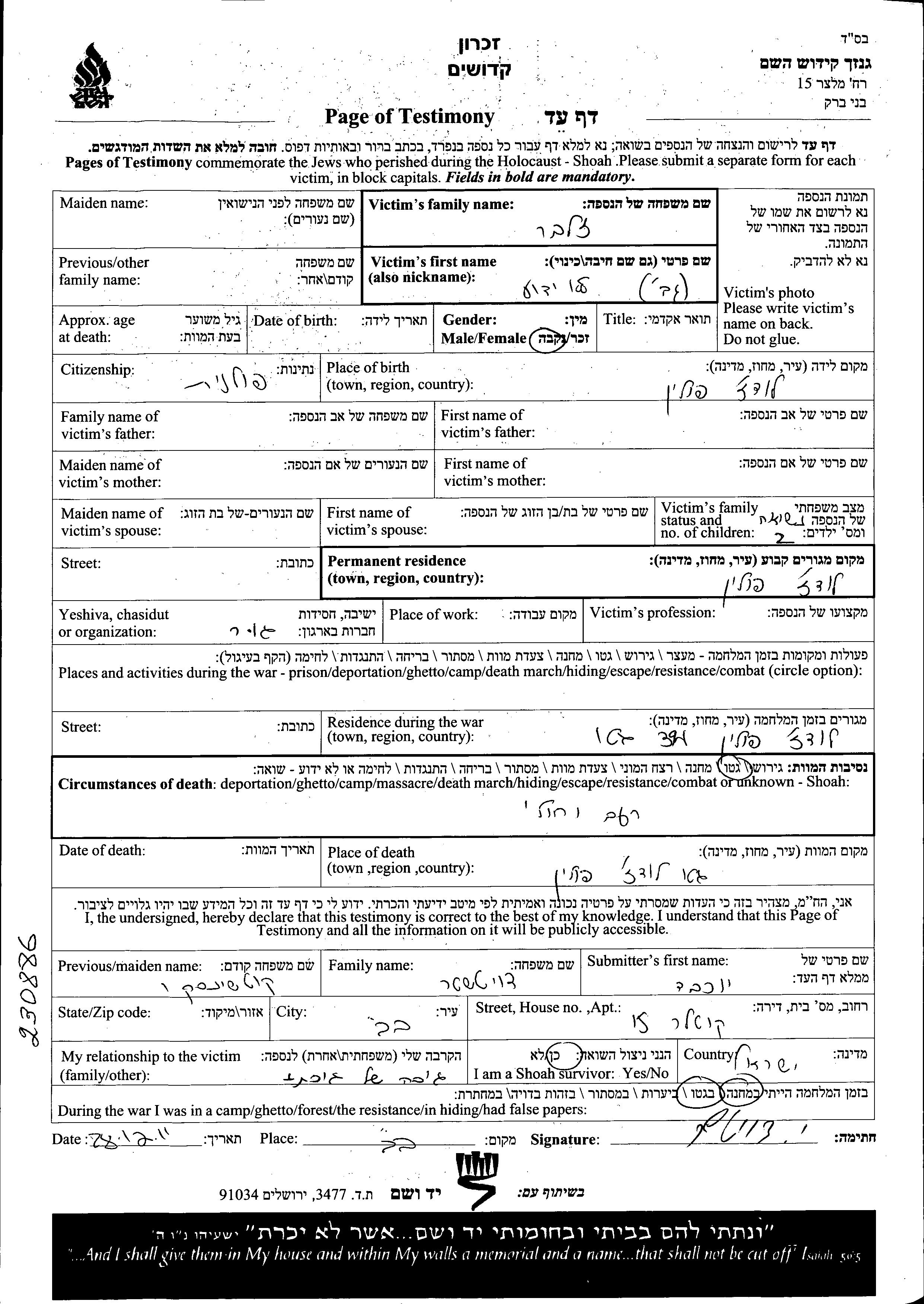 Яд Вашем - Листы свидетельских показаний Мемориального фонда