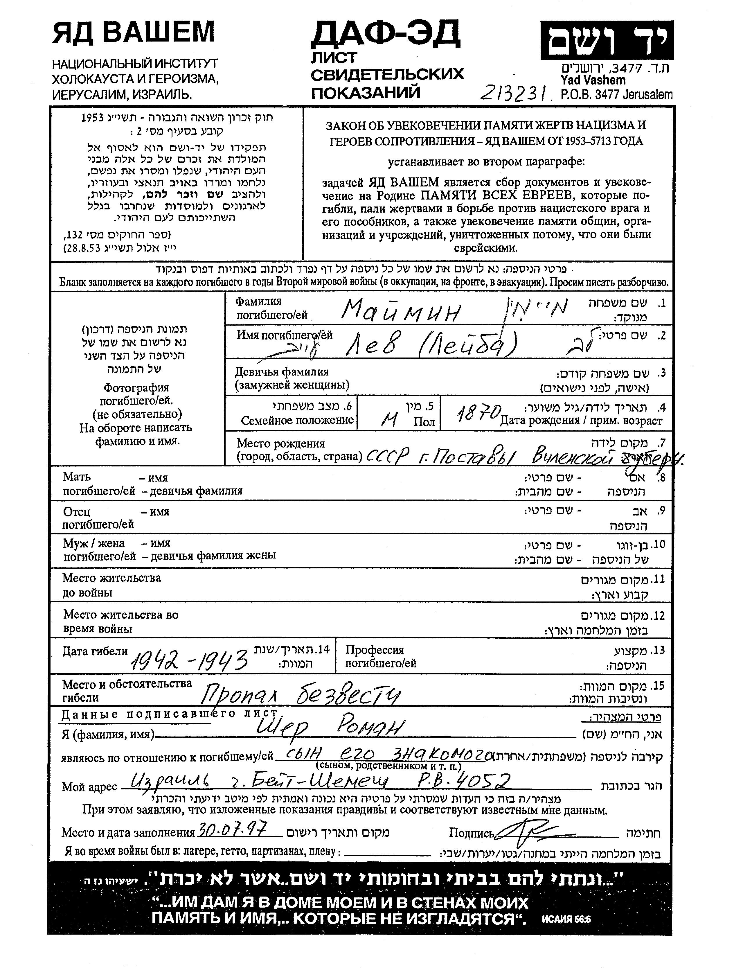 Поиск подателя Листа свидетельских показаний. Поиск по любому имени, включая уменьшительное или прозвище