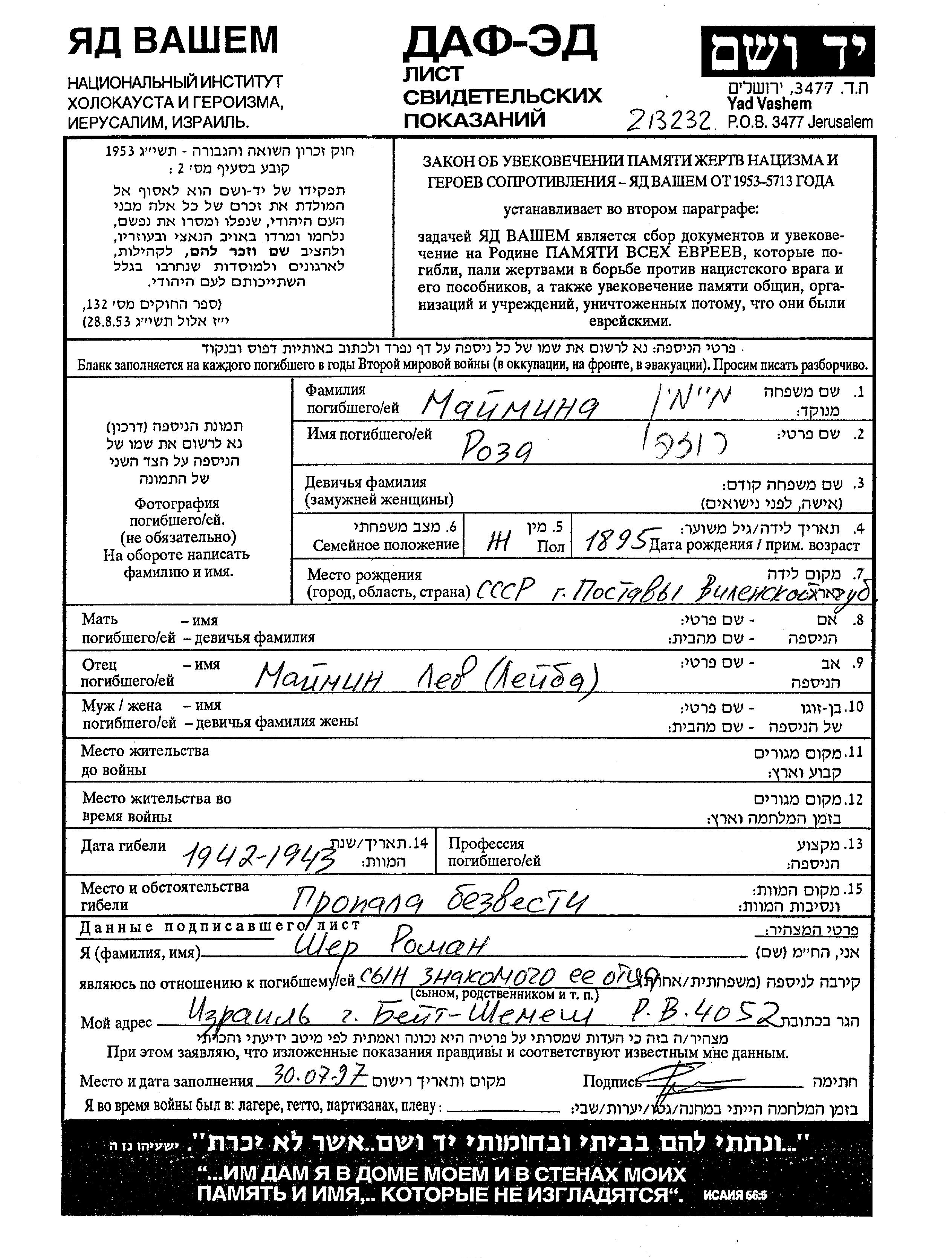 Во время Шоа евреев уничтожали разными способами: газовые камеры, расстрелы, их заживо хоронили или сжигали, непосильным принудительным трудом, голодом, эпидемиями, отсутствием минимальных гигиенических условий и медицинского обслуживания, и т.д. Некоторые евреи добровольно расстались со своей жизнью, чтобы избежать ареста и дальнейших преследований или чтобы покончить с безысходностью и бесконечными страданиями. Десятки тысяч еврейских солдат, служивших в Советской армии и попавших в плен, , были отобраны как евреи и убиты. Многие были зарегистрированы как «пропавшие без вести».