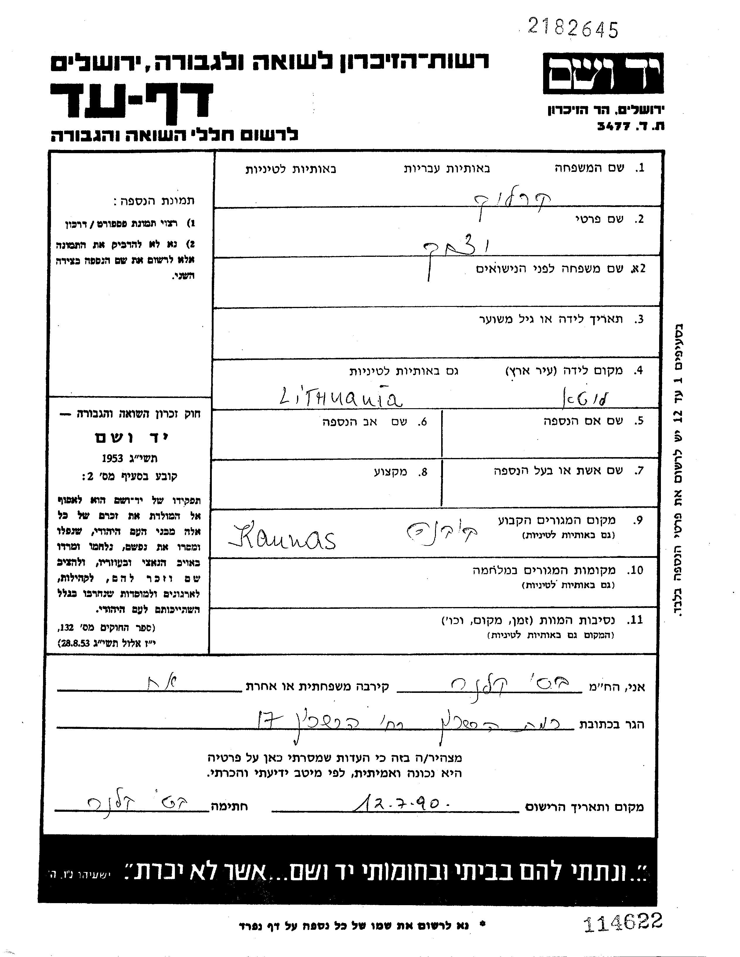 Карлик Ицхак Каунас, Литва Лист свидетельских показаний