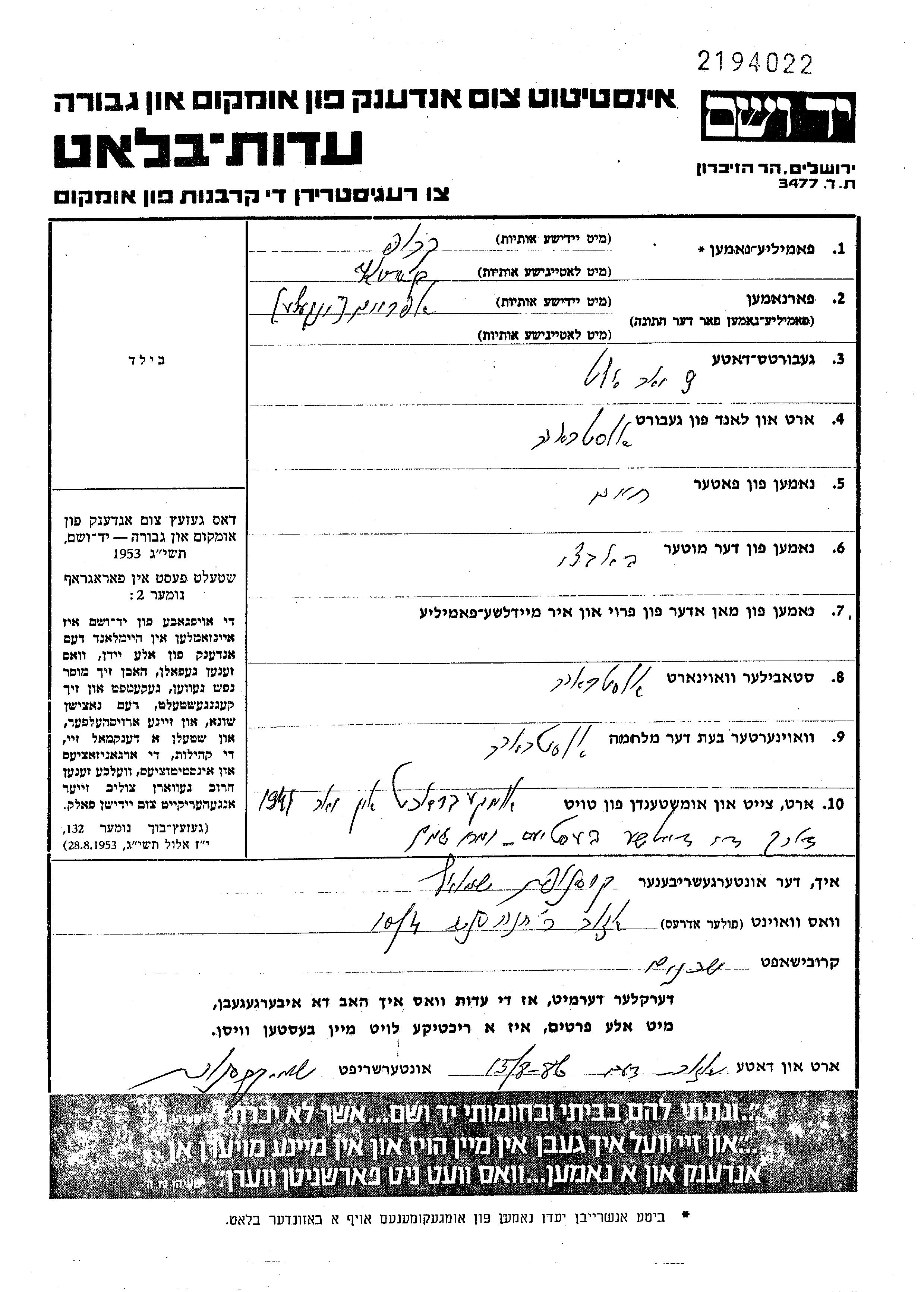Яд Вашем - Листы свидетельских показаний Мемориального фонда