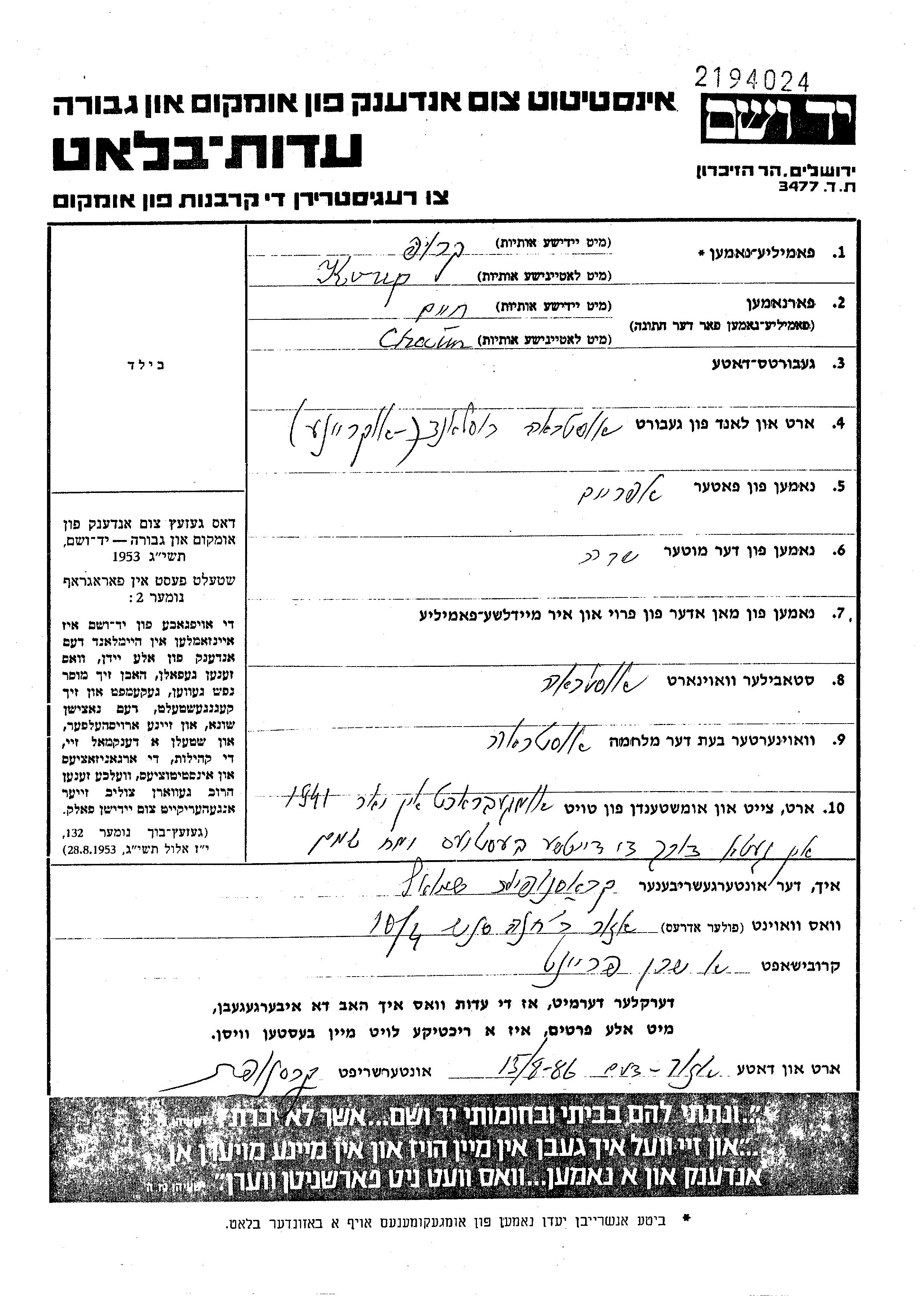 Яд Вашем - Листы свидетельских показаний Мемориального фонда