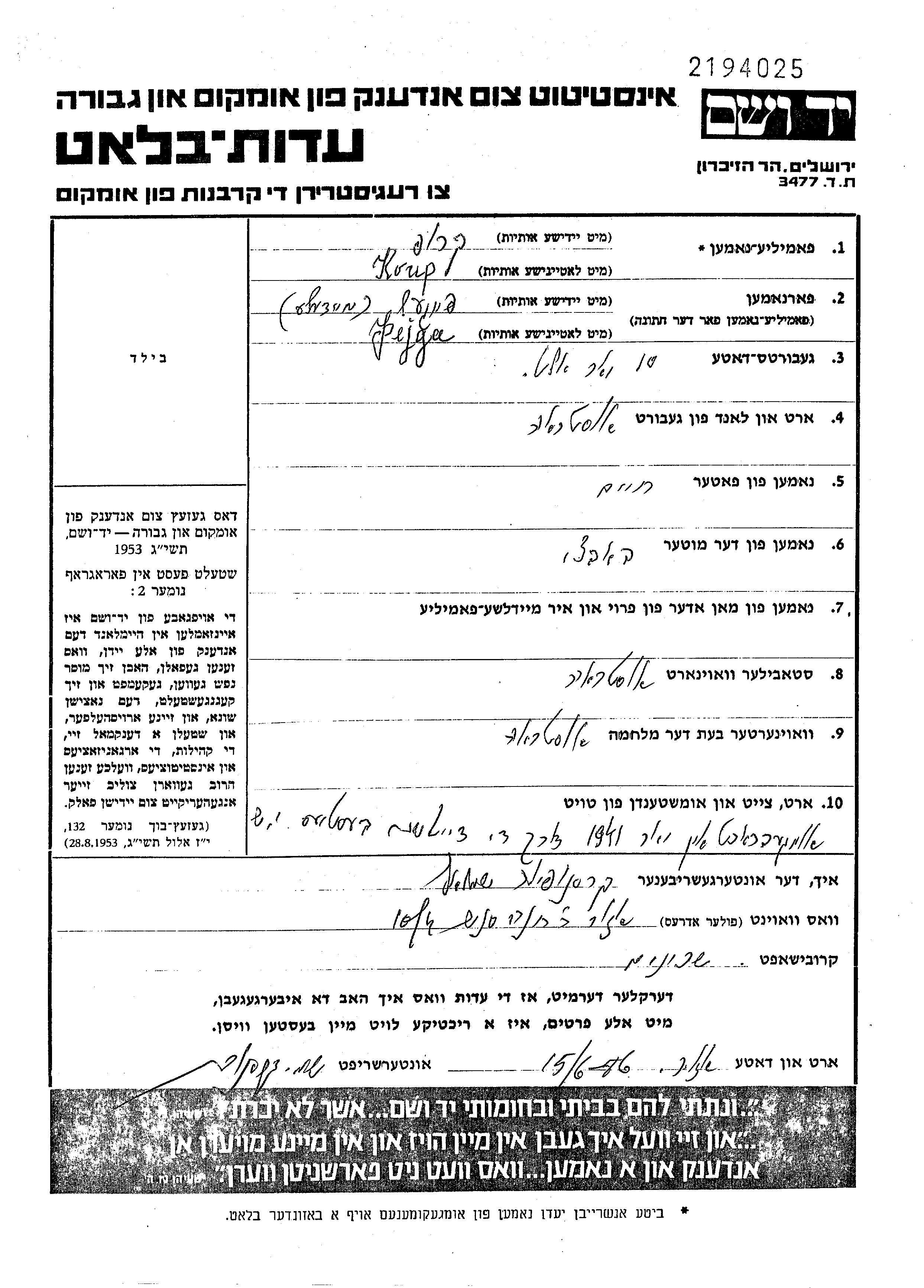 Яд Вашем - Листы свидетельских показаний Мемориального фонда