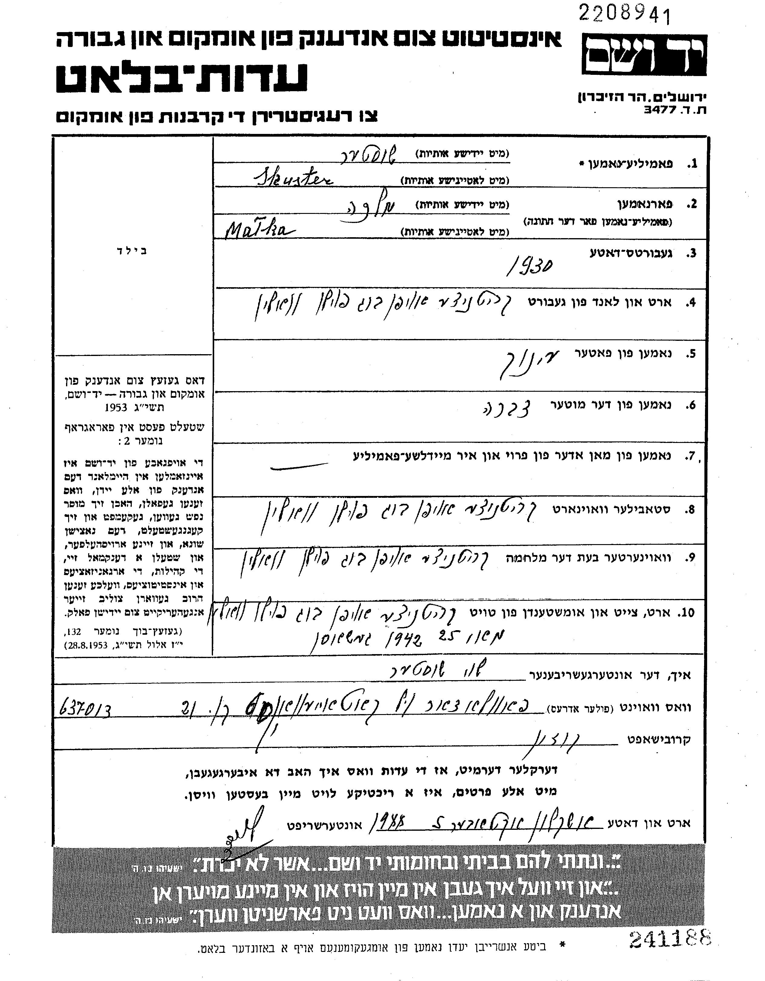 Яд Вашем - Листы свидетельских показаний Мемориального фонда