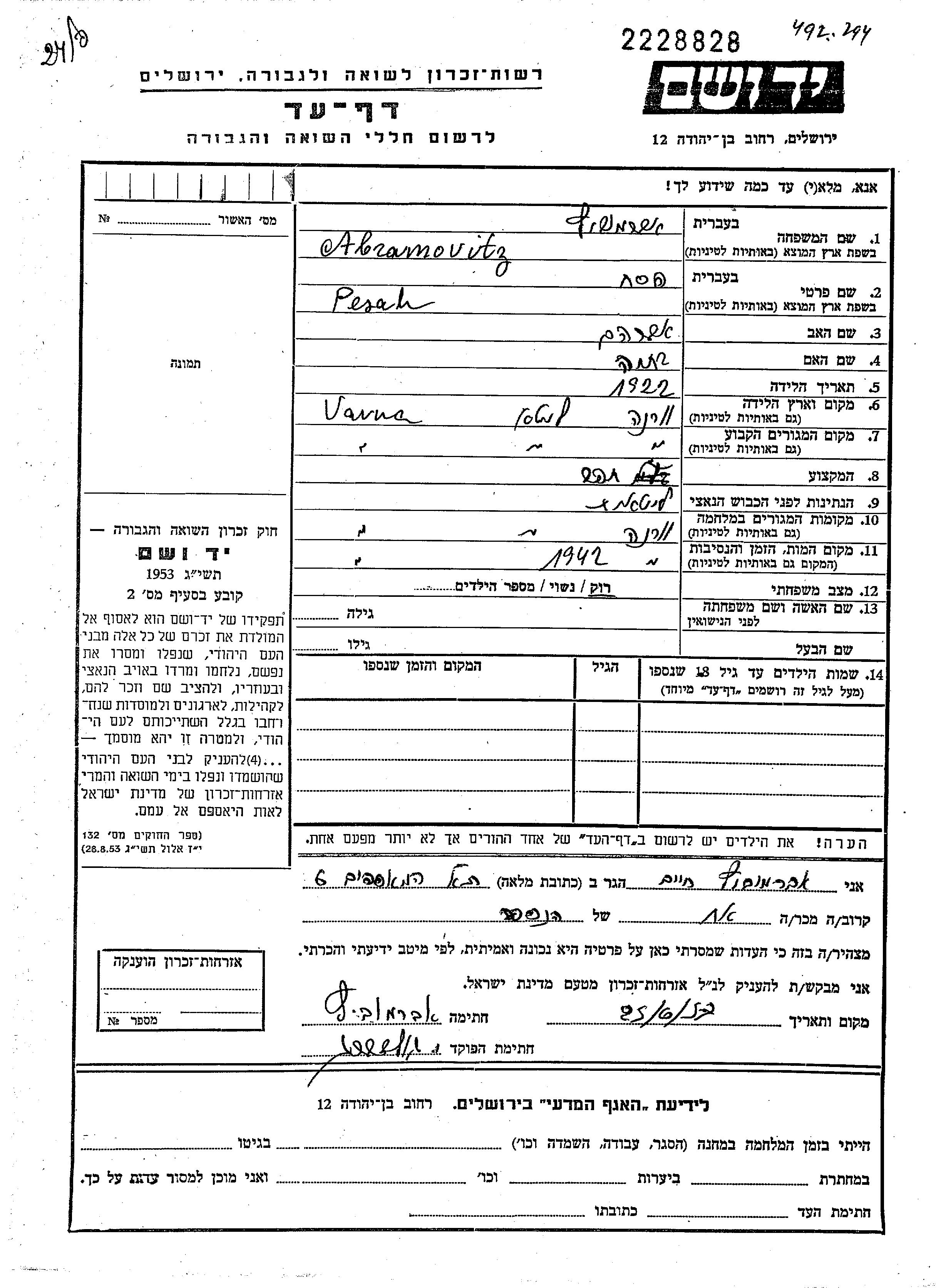 Во время войны/Шоа: